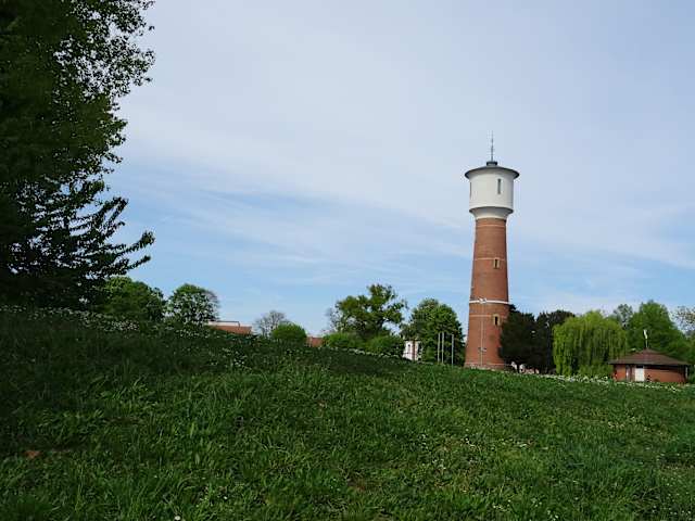 Der Stadtrundgang in der Broschüre der Tourist-Info von Ladenburg führt einen auch zu diesem Teil der Stadt. Der markante Wasserturm wurde wohl 1903 errichtet und ist mit seiner Höhe von 43 m von weitem sichtbar. Anfang der 1990er wurde der Wasserturm außer Betrieb genommen. Der Turm wurde 2020 saniert.