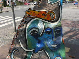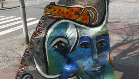 Sehr schöne riesige bemalte Fels Findlinge, ein schöner Weg entlang, passt zu Hundertwasser, tolle Künstlerin.