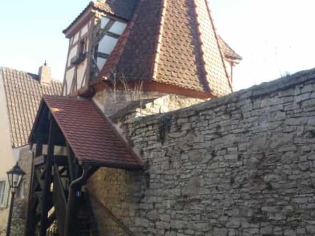 Sulzfeld am Main hat noch eine nahezu vollständig geschlossene Befestigungsmauer (nur an einigen wenigen Stellen ist die Mauer unterbrochen). Diese Wehrmauer stammt aus dem 15. / 16. Jahrhundert, hat eine Länge von ca. 950 Meter und umschließt das historische Alt-Dorf. Die historische Ortsbefestigung hat noch heute 21 größere und kleiner Türme, wovon 3 Turmtore sind. Diese 3 Turmtore sind Zugangstore, die durch die historische Wehrmauer in den alten Ortskern führen. Bei den 3 Turmtore handelt es sich um die beiden südöstliche Zugangstore „Unteres Maintor“ und „Oberes Maintor“, sowie um das westliche Zugangstor, welches als „Erlacher Tor“ bezeichnet wird. Man kann schön an der alten Dorfmauer entlang laufen (sowohl innerhalb, als auch außerhalb der Befestigungsanlage) und dabei u.a die unterschiedlichen Türme betrachten. Uns hat unser Spaziergang entlang der historischen Ortsbefestigung aus dem 15. / 16. Jahrhundert äußerst gut gefallen.