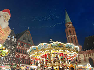 Ein eher für die Finanz-Metropole Frankfurt kleiner Weihnachtsmarkt in der Innenstadt und am Römer: Am Wochenende sehr voll und mit viel Gedränge (Geldbörsenpflicht in die vorderen Taschen) und wenig Plätzen an den Buden mit teilweise sehr guten Punch-Variationen. Die Preise sind einer Großstadt entsprechend.