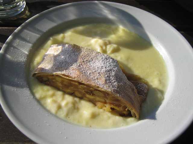 Bei schönem Wetter kann man wunderbar draußen sitzen.Würstchen,Sauerkraut und Apfelstrudel essen. Sehr lecker