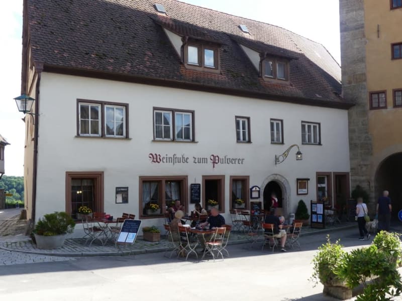 Bei einem Städtetrip nach Rothenburg besuchten wir die Weinstube zum Pulverer. Überrascht waren wir von dem Flair und der Einrichtung. Man sitzt auf den Stühlen mit den geschnitzten Potraits der mittelalterlichen Ratsherren und genießt in der holzgetäfelten altdeuschen Weinstube fränkische Gastlichkeit. Das Lokal liegt in der ältesen und breitesten Gasse Rothenburgs. Das Burgtor zum Burggarten ist gleich nebenan. Seit 1902 befindet sich die Weinstube im Orginalzustand. Eine Spezialität ist das Rothenburger Gruschberle,das sehr zu empfehlen ist. Lassen sie sich überraschen. Ein Besuch ist lohnenswert.