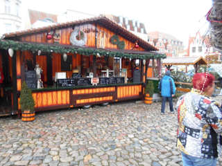 In Wismar scheint das Motto der Adventszeit „Guten Appetit“ zu lauten. Auf dem Weihnachtsmarkt am Markplatz kann man den Eindruck bekommen, dass vorweihnachtliche Stimmung nur entsteht, wenn man sich den Bauch füllt – es gibt fast ausschließlich Imbissstände.