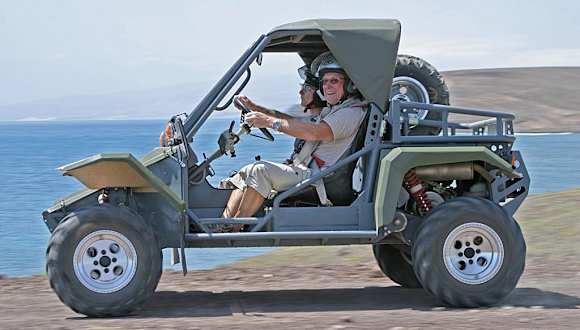 ::: Buggy-Touren ::: Quad-Touren ::: Scooter ::: MTB´s ::: Motorräder :: Die Tomcar-Buggy-Tour ist etwas ganz Besonderes: Es handelt sich um eine "personal guided Tour", d.h. ihr fahrt nicht in einer Gruppe, sondern habt das Tomcar und euren persönlichen Tourguide ganz für Euch allein. Entsprechend können maximal 2 Personen an dieser Tour teilnehmen. Eurer Guide fährt auf einem Quad voraus und zeigt Euch die schönsten Stellen im Süden Fuerteventuras, die ihr sonst wohl nie zu Gesicht bekommen würdet. Berge, Täler, Küsten, ausgetrocknete Flussbetten und wüstenhafte Bereiche stehen auf dem Programm. Da es eine individuelle Tour ist, kann die Streckenführung an eure Wünsche angepasst werden. Dasselbe gilt für das Tempo, je nachdem ob ihr es lieber rasant oder gemütlich bevorzugt. Das Tomcar ist ein original Militärbuggy, der in den USA entwickelt und gebaut wird. Das Fahrzeug wird vom israelischen Militär und von Polizei- und Grenzschutzeinheiten in den USA, Australien und vielen anderen Ländern eingesetzt. U.a. waren Tomcars im ersten Golfkrieg im Einsatz. Mit einer Motorleistung von 52 PS und einer Bodenfreiheit von 38cm bietet ein Tomcar unvergleichlichen Fahrspaß. Da die Zahl der Termine naturgemäß sehr begrenzt ist, solltet Ihr Euch unbedingt frühzeitig anmelden. Gäste, die bereits an einer unserer Buggy- oder Quad-Tour teilgenommen haben, werden bei der Terminvergabe bevorzugt. Tomcar-Buggy-Tour (personal guided) Dauer: 2h 45min Länge: ca. 60 - 80km (je nach Route) Preis: 200€ (1 oder 2 Personen) Verlängerung: 40€ für jede weitere 1/2-Stunde ACHTUNG: NICHT VERWECHSELN! Unsere Original Xtreme-Touren könnt Ihr nur direkt bei uns buchen, NICHT über Euere Reiseleitung! Kontakt E-Mail: info@xtreme-car-rental.com Tel.: (0034) 928 875 630 WEB: www.xtreme-car-rental.com Ihr findet uns im Hotel Taro Beach in Costa Calma.
