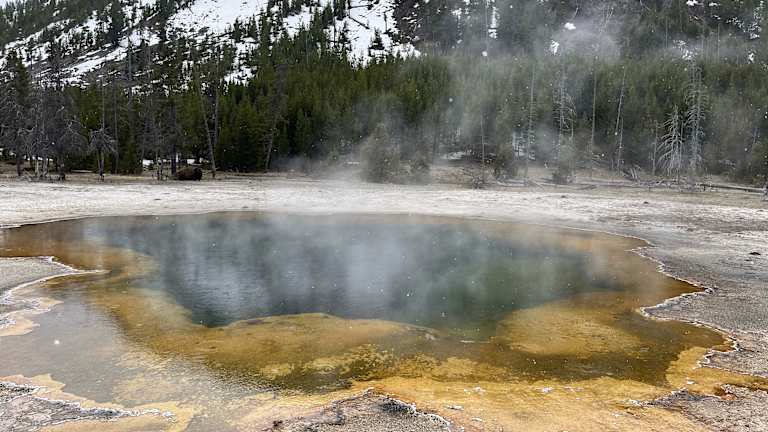 Der Yellowstone Nationalpark stand schon lange auf unserer Wunschliste. Auf unserer USA- und Kanadareise 2024 konnten wir ihn im Mai endlich für zwei Tage besuchen. Leider war es in der kalten Jahreszeit offensichtlich noch nicht das beste Wetter. Es war spannend und beeindruckend, auch wenn wir die farbenprächtigen Ausprägungen der Geysire etc. nicht sehen konnten. Es gibt jede Menge Punkte, an denen sich ein Halt lohnt. Überall dampft es, überall Geysire und auch die Tierwelt ist spannend. Bisons kreuzten unseren Weg und wir konntne sogar Wölfe und Bären beobachten. Es war sehr schön, allerdings würden wir einen Besuch im Sommer empfehlen.