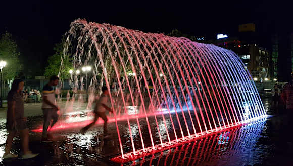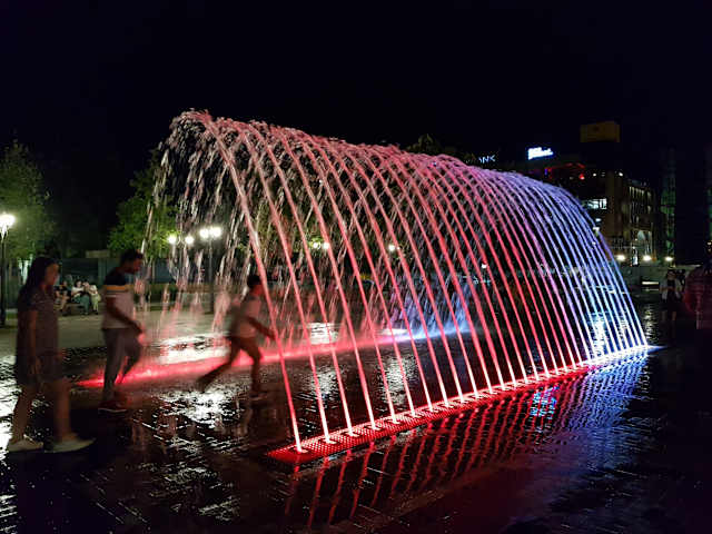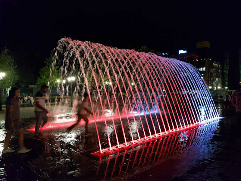 Den 2800-Jahre-Yerevan-Park sollte man unbedingt besuchen. Vor allem im Sommer, dort ist das ein sehr wichtiger Treffpunkt für Familien, für Freunde, für Verliebte. Die Kinder mögen es, in den farbigen Wasserfontänen zu spielen.
