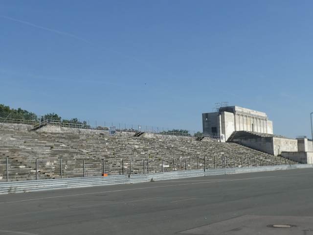 Die Zeppelinhaupttribüne am Zeppelinfeld ist ein Bauwerk der NAZIs auf dem ehemaligen Reichsparteitagsgelände in Nürnberg (beim Dutzendteich). Die Zeppelinhaupttribüne wurde 1935 - 1937 nach Plänen Albert Speer erbaut und sie ist das einzige NAZI-Bauwerk am Reichsparteigelände, welches fertiggestellt wurde. Von der Zeppelinhaupttribüne an der nordöstlichen Seite vom Zeppelinfeld blickt man auf die Aufmarschstraße unterhalb der Haupttribüne, auf Aufmarschgelände / Paradeplatz am Zeppelinfeld und zu den „einfachen“ Tribünen, die auf den anderen drei Seiten das Zeppelinfeld umgeben.