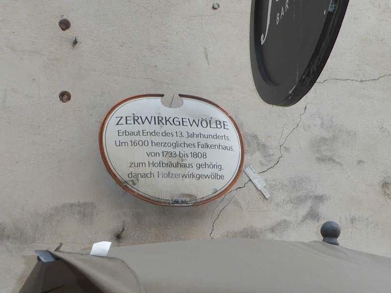 Ein sehr bekanntes Bauwerk in der Münchner Altstadt ist das Zerwirkgewölbe in der Ledererstr. 3. Das Zerwirkgewölbe ist das zweitälteste Bauwerk der Stadt und stammt laut eines Historikers vom Jahr 1264. Das Gebäude wurde unter Herzog Ludwig dem Strengen (1229 – 1294) erbaut. Ludwigs Beiname der Strenge rührt daher, dass er seine erste Ehefrau Maria von Brabant 1256 hinrichten ließ, weil er sie fälschlicherweise des Ehebruchs verdächtigte. Das Bauwerk ist als Baudenkmal in die Bayerische Denkmalliste eingetragen. Das Gebäude diente früher als Ort zur Verarbeitung des erlegten Wilds der Hofjagden. Da in dem Gewölbebau Tiere „zerwirkt“ (Jägersprache für „zerlegen, zubereiten“) wurde, stammt der Name Zerwirkgewölbe. Der Bau mit dem eindrucksvollen Kreuzgratgewölbe gehörte vermutlich ursprünglich zum herzoglichen Falkenhaus in der Burgstraße, wurde jedoch um 1590 ausgegliedert und befand sich bis 1733 im Besitz der Familie Schlichtinger. Von 1733 bis 1808 gehörte das Gebäude zur Brauerei Hofbräu. An der Fassade des Zerwirkgebäudes sind zwei interessante große Fresken zu sehen. Auf dem einen Fresko an der Ostseite ist ein Hirsch abgebildet und an der nach Süden ausgerichteten Stirnwand sieht man auf dem Fresko, dass Hirsche gejagt werden. Dieses Gemälde ist jedoch leider schwer zu erkennen, da es sehr verblasst ist. Das Gebäude besteht aus zwei übereinander befindlichen Gewölbehallen. Nach 1726 wurde das Zerwirkgewölbe mehrmals umgebaut. Zuletzt waren im Zerwirkgebäude, nach einem Spezialgeschäft für Wild, Studiobühnen des Gärtnerplatztheaters (ab 1989) und der Bayerischen Theaterakademie (ab 2001) untergebracht. Inzwischen werden die verwinkelten Räumlichkeiten für die Gastronomie, wie z.B. Brasseria Fedora Bar und der Spezlwirtschaft genutzt.