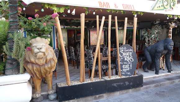 Das Zoo - Restaurant liegt mitten in Puerto de Mogán auf der Rückseite vom Hafen. Es ist nicht zu übersehen, denn von außen sind schon einige Safari-Tiere zu bewundern, wie einen großen Gorilla. Das Restaurant ist besonders für Fleischliebhaber zu empfehlen. Die Spareribs gibt es ohne Grenzen als Nachschlag, T-Bornsteak einfach klasse. Als wir Abends da waren, wurde am Nachbartisch der Zoo-Burger serviert. Den wollte ich unbedingt probieren, also sind wir am nächsten Tag nachmittags wieder hin. Es war eine super Idee. Der Zoo-Burger ist absolut zu empfehlen. Bedienung und Service klasse und das Preis-Leistungsverhältnis stimmt auch. Können das Zoo nur empfehlen!!!!