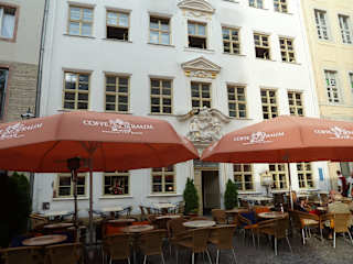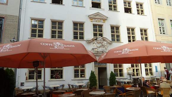Das Kaffehaus "Zum Arabischen Coffe Baum" erreicht man z.B. vom Markt kommend durch das Barfußgäßchen (hier gibt es eine Lokalität neben der anderen). Auf halbem Wege biegt man in die Kleine Fleischergasse ein und schon steht man nach kurzem Weg vor dem imposanten Gebäude. Es ist ein kultur- und kunstgeschichtliches Baudenkmal und zählt zu Europas ältesten Kaffeeschänken. Seit Anfang des 18. Jahrhunderts wird hier nachweislich Kaffee ausgeschenkt. Es war für viele prominente Musiker seiner Zeit der Stammtisch. So u.a. auch für Robert Schumann. Dieses konnten wir bei unserem Essen (übrigens zu "normalen Preisen") in der "Musikerstube" auf den zahlreichen dort aufgehängten Fotos/Bildern sehen. (Siehe auch eingestellte Fotos) In diesem Gebäude findet man neben dem Restaurant (auch viele Sitzplätze sind vor dem Gebäude vorhanden) und verschiedenen Cafe-Räumen auch ein Kaffee-Museum. Es wird eine Ausstellung zur Geschichte des Kaffees in Leipzig gezeigt. Besonders beachtenswert ist das außergewöhnliche Hauszeichen, das dem Haus seinen Namen „Zum Arabischen Coffe Baum“ gab. Gäste waren u.a. auch: Johann Sebastian Bach, Gotthold Ephraim Lessing, Johann Wolfgang von Goethe, Napoleon Bonaparte, Franz Liszt und Richard Wagner. Fazit: Es lohnt sich, hier einzukehren!