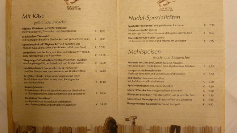 Sehr schlechter Service, 20 Minuten auf bestellte Getränke gewartet. Nach 50 Minuten wartezeit, die Info, das mein Gericht (Leberkäse) nicht mehr lieferbar ist. Habe mit meinem Frau das Angebot, eine Nachbestellung zu tätigen, abgelehnt. Die Getränke brauchte ich nicht zu bezahlen. Ein nach uns kommendes Paar bekam einen Tisch zugewiesen, aber weder eine Speisekarte noch der Getränkewunsch wurde erfragt. Nach 30 Minuten hat das Paar das Restaurant verlassen. Wenn man ein gutes Restaurant sucht, schräg gegenüber der Sennküche befindet sich eins. Nachdem wir das Lokal verlassen hatten, sind wir dorthin gegangen, wurden sofort SUPERFREUNDLICH bedient . Nach all meinen Besuchen und guten Erfahrungen mit der Sennküche, kann ich von einem Besuch unter dem neuen Besitzern zur abraten. Die sehen mich nicht wieder.
