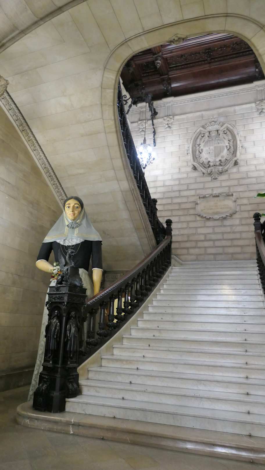 Treppenhaus im Rathaus mit Pappmaché-Gigantin
