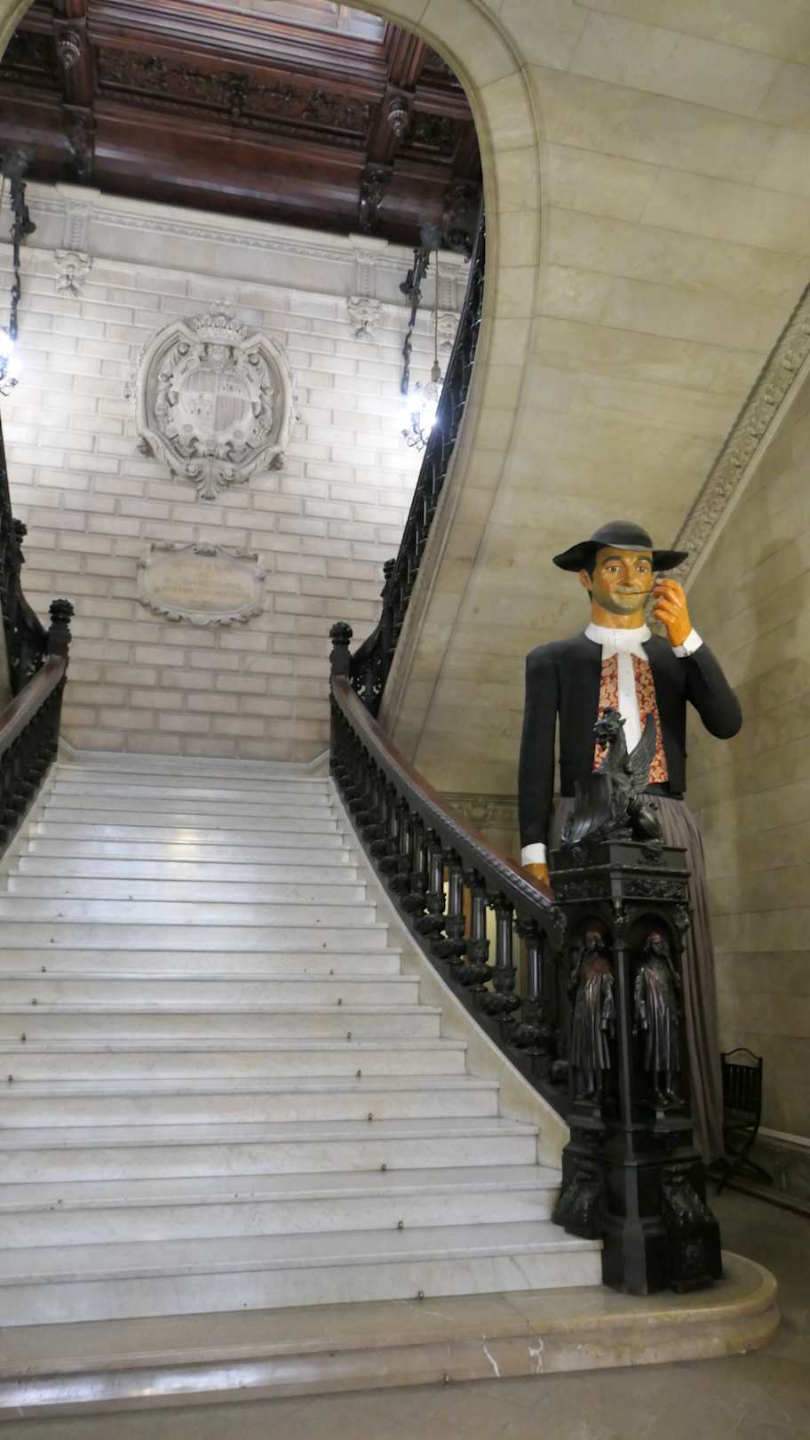 Treppenhaus im Rathaus mit Pappmaché-Giganten