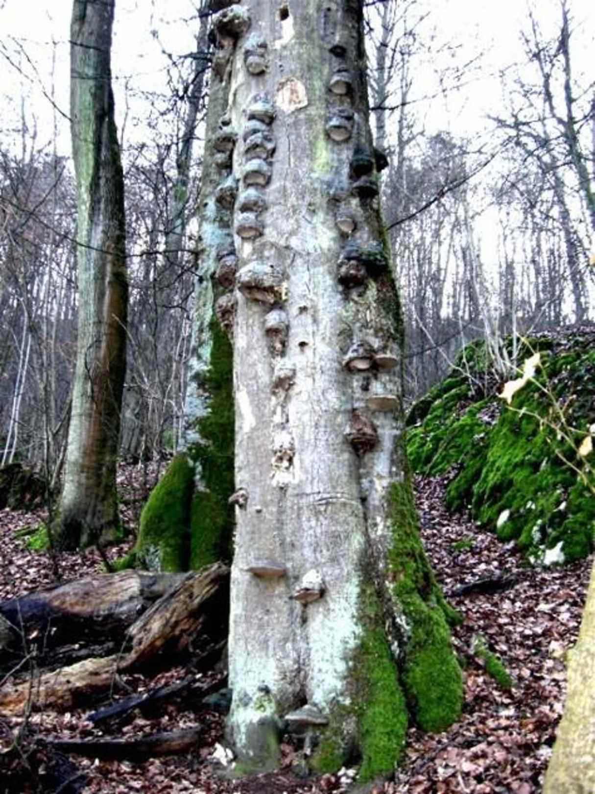 Baum mit Schwämmen am Wanderweg im Altmühltal in Essing