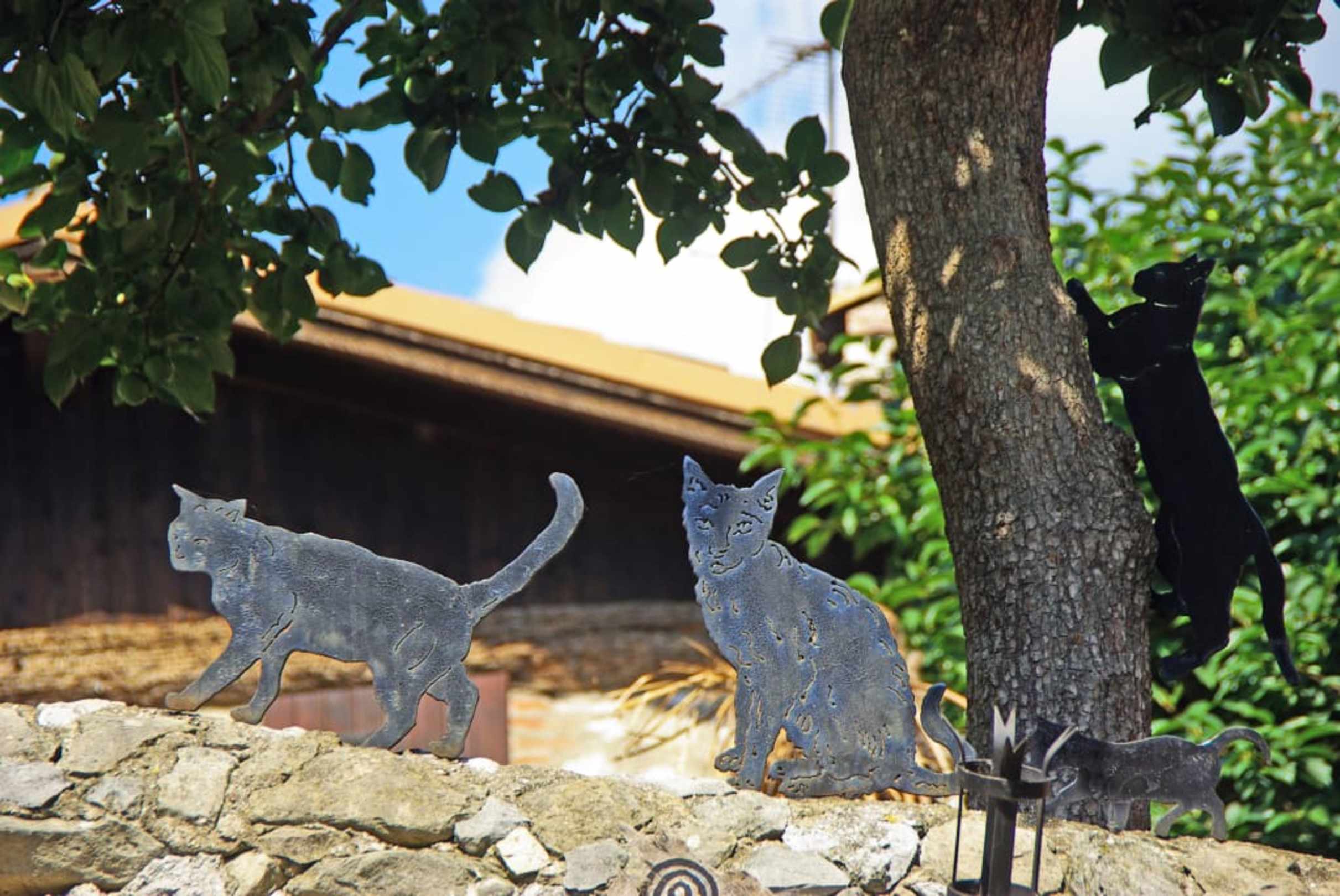 Geschmückt mit Metall-Katzen