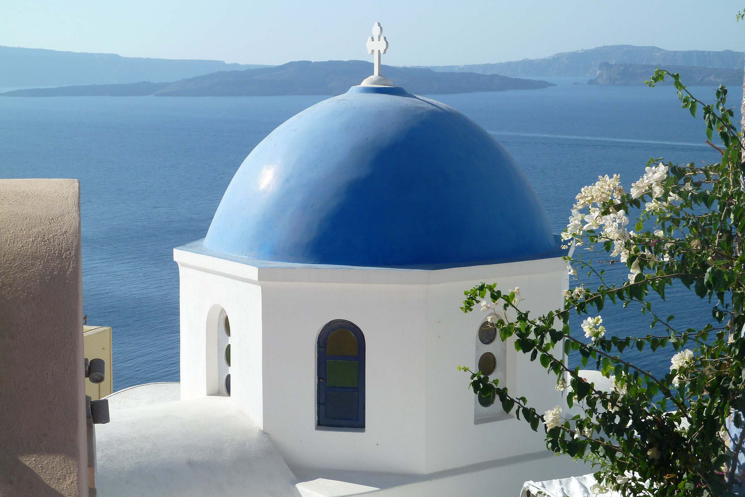 Oia, von der blauen Kuppel in die Caldera