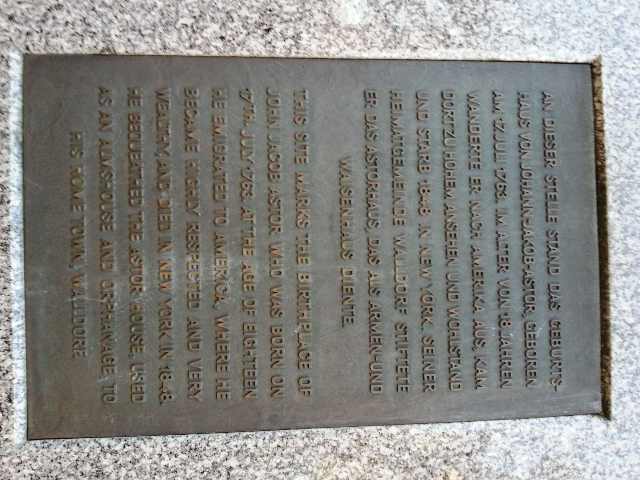 Gedenken an Johann-Jakob Astor