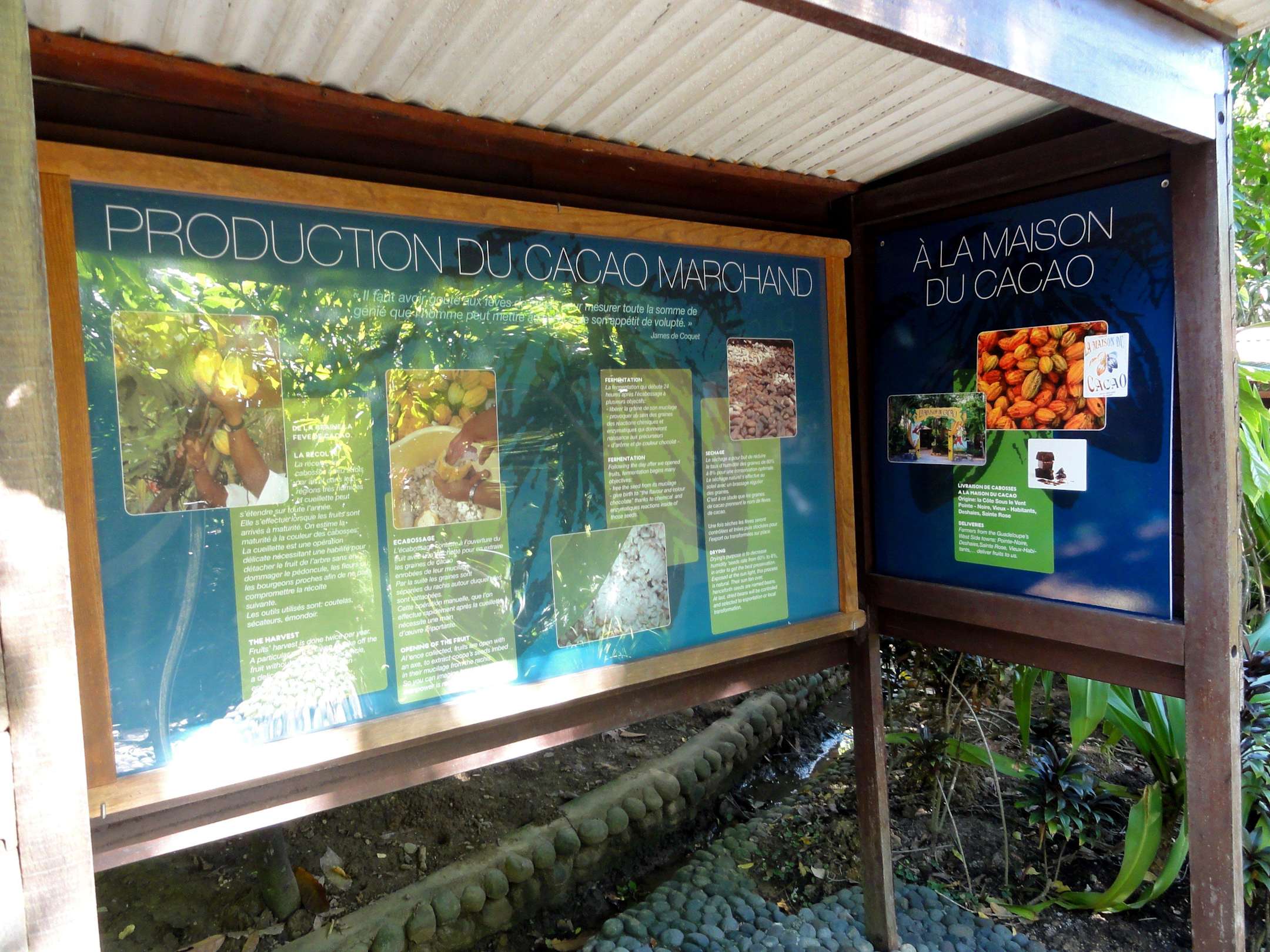 Info-Tafeln im Park des Maison du Cacao