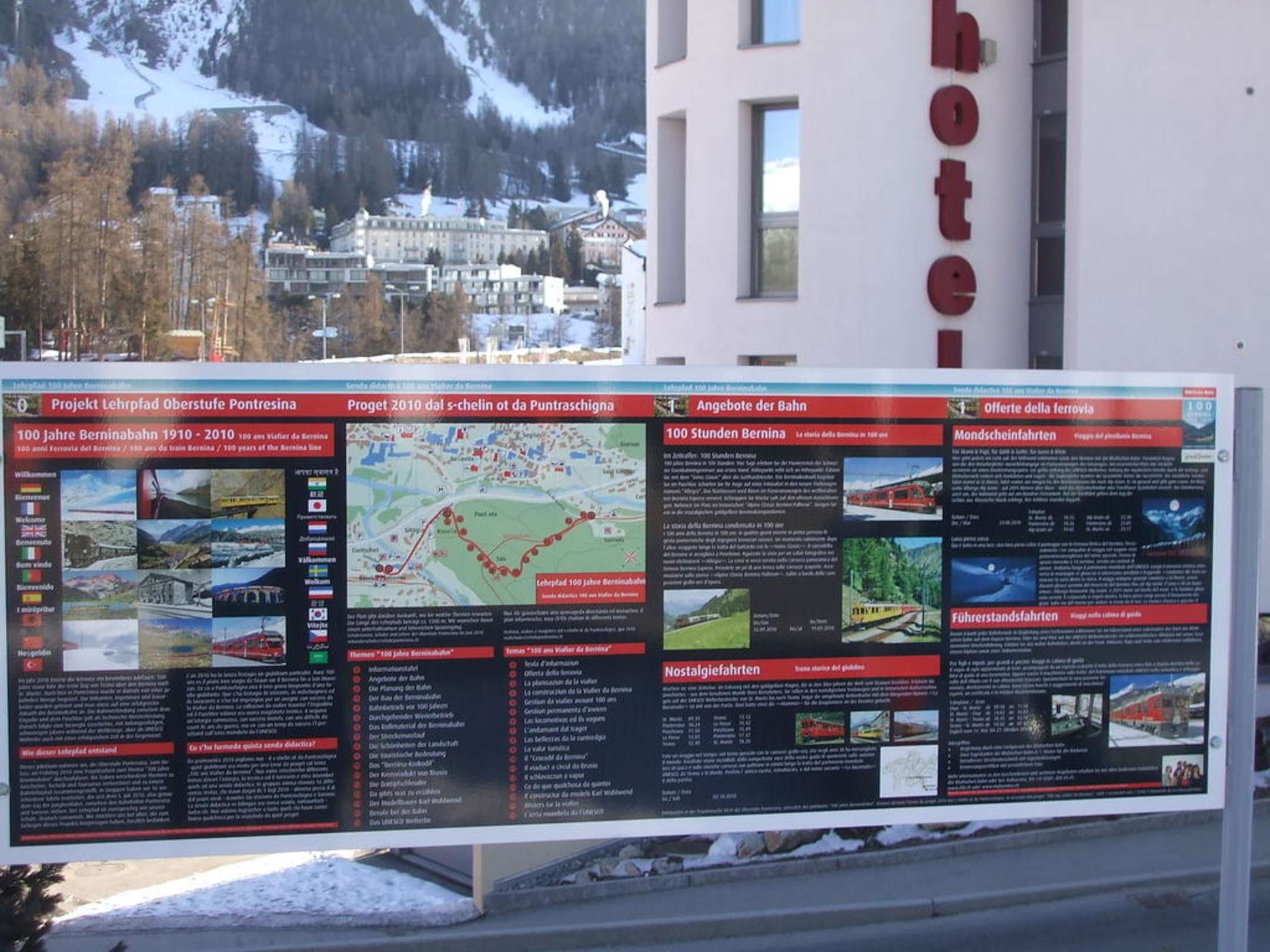 Informationstafel am Bahnhof Pontresina
