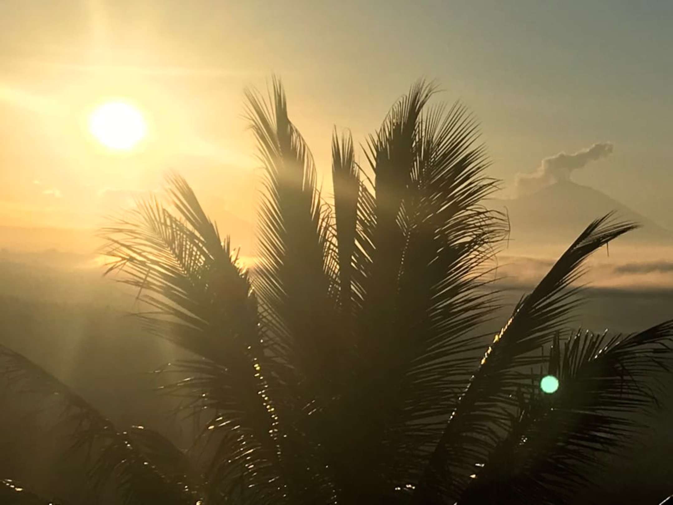Sonnenaufgang, der Agung raucht