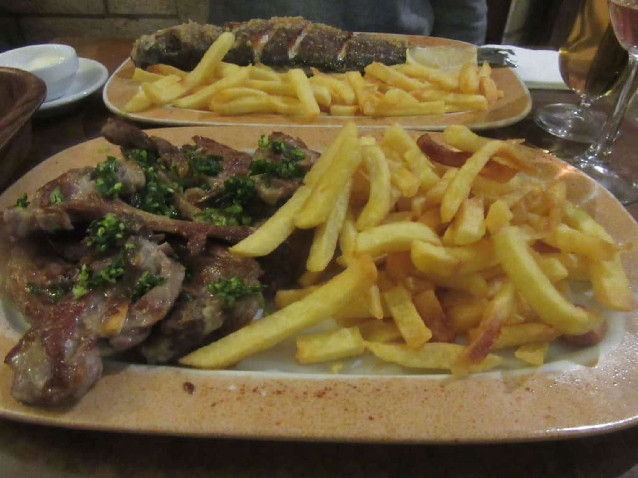 Lammkotletts und gegrillter Fisch