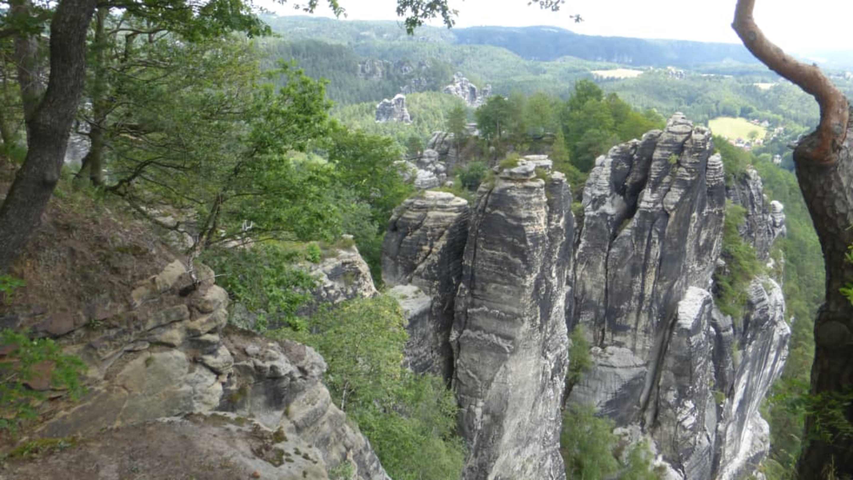 Blick auf die Felslandschaft im Bastei-Massiv