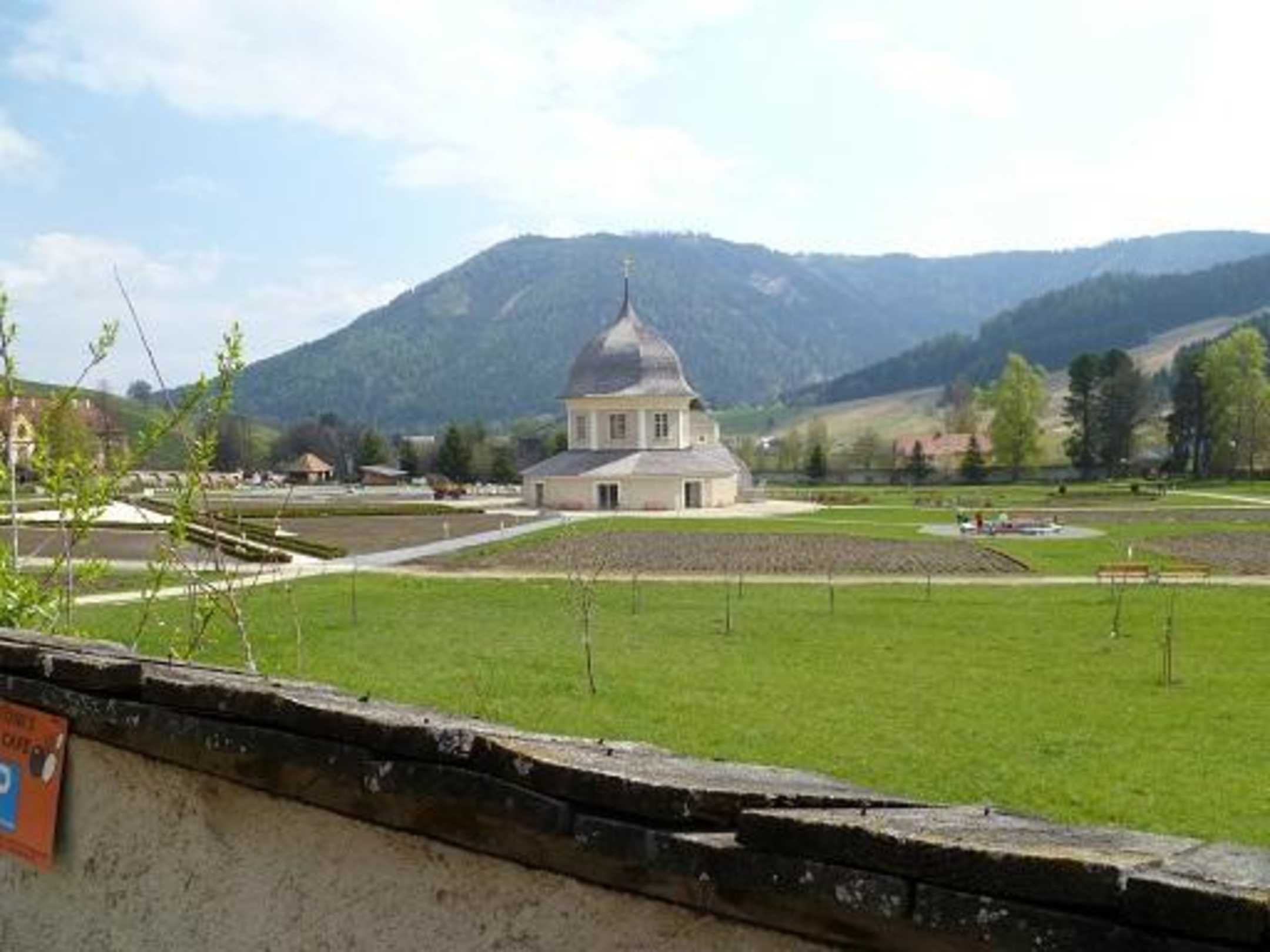 Ausblick über die Mauer in den Stiftsgarten
