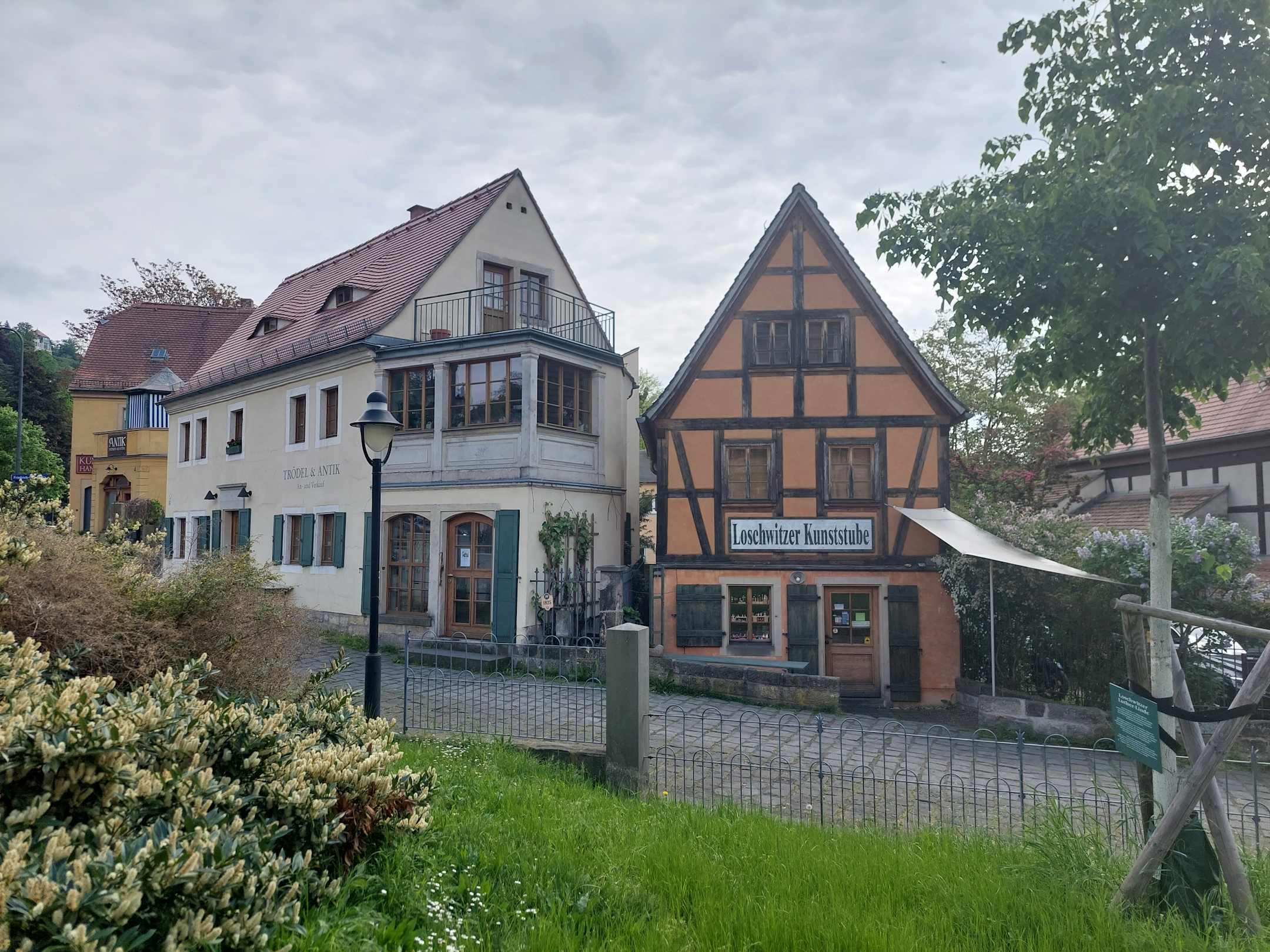 Schöne alte Häuser am Füße der Brücke