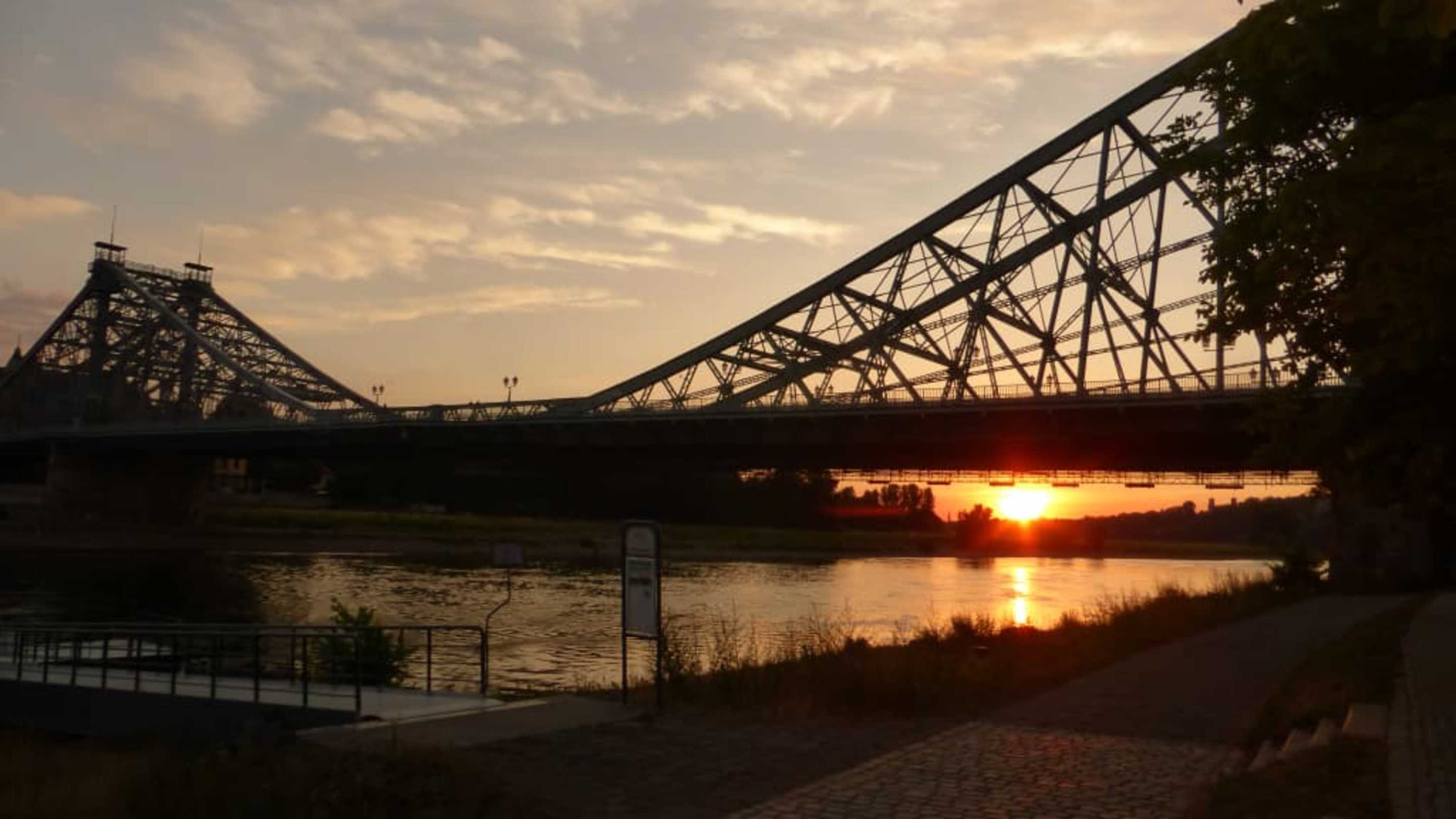 Das „Blaue Wunder“ bei Sonnenuntergang