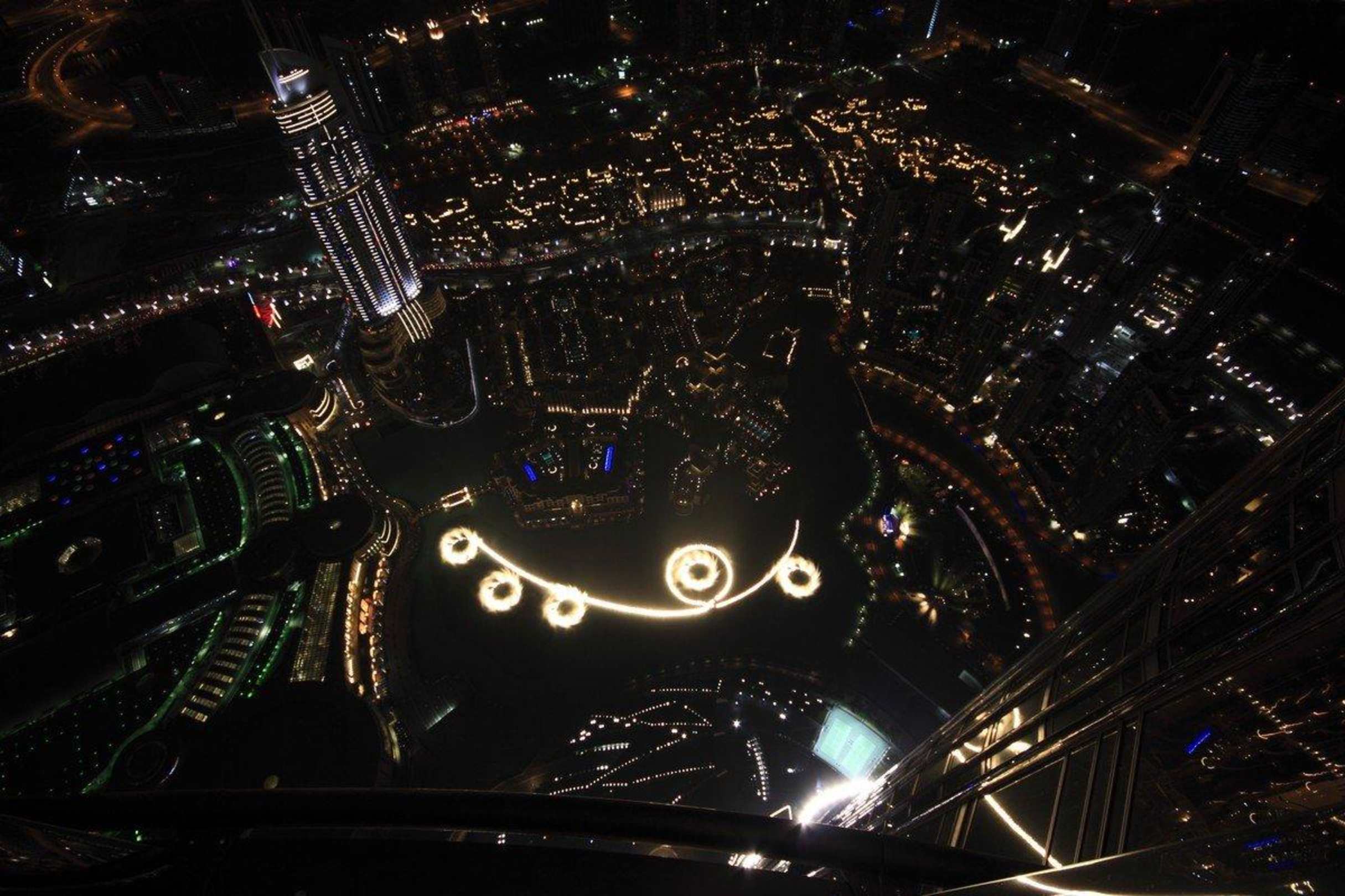 Blick auf die Wasserspiele (Dubai Fountaines)