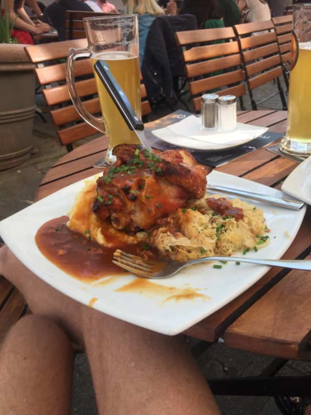 Frisch gebrautes Biet und leckere Haxe