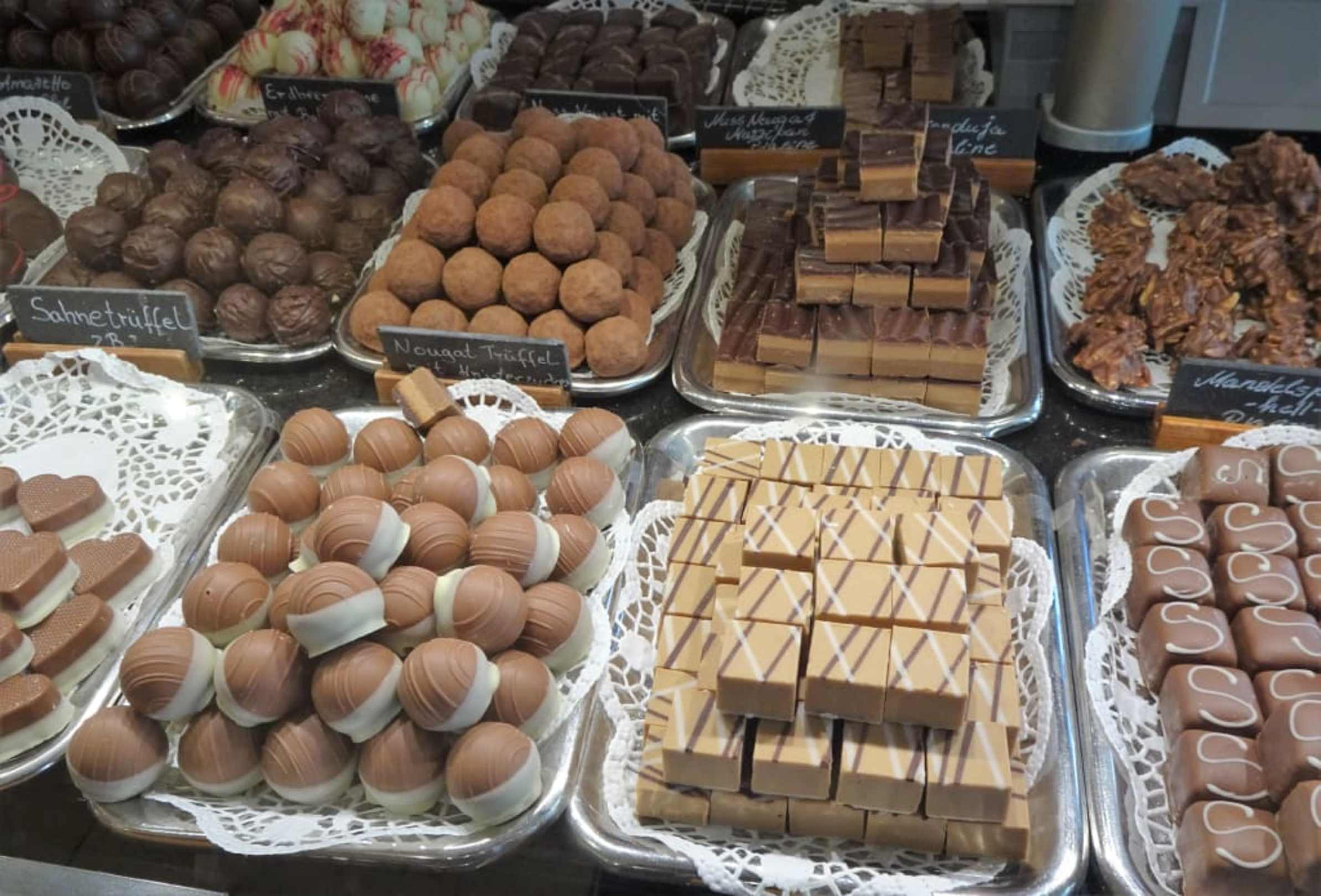 Auslage im Tresen des Café Niederegger