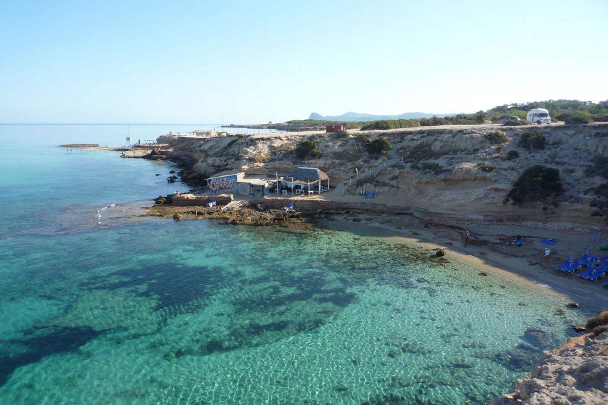 Cala Comte mit FKK-Strand im Vordergrund