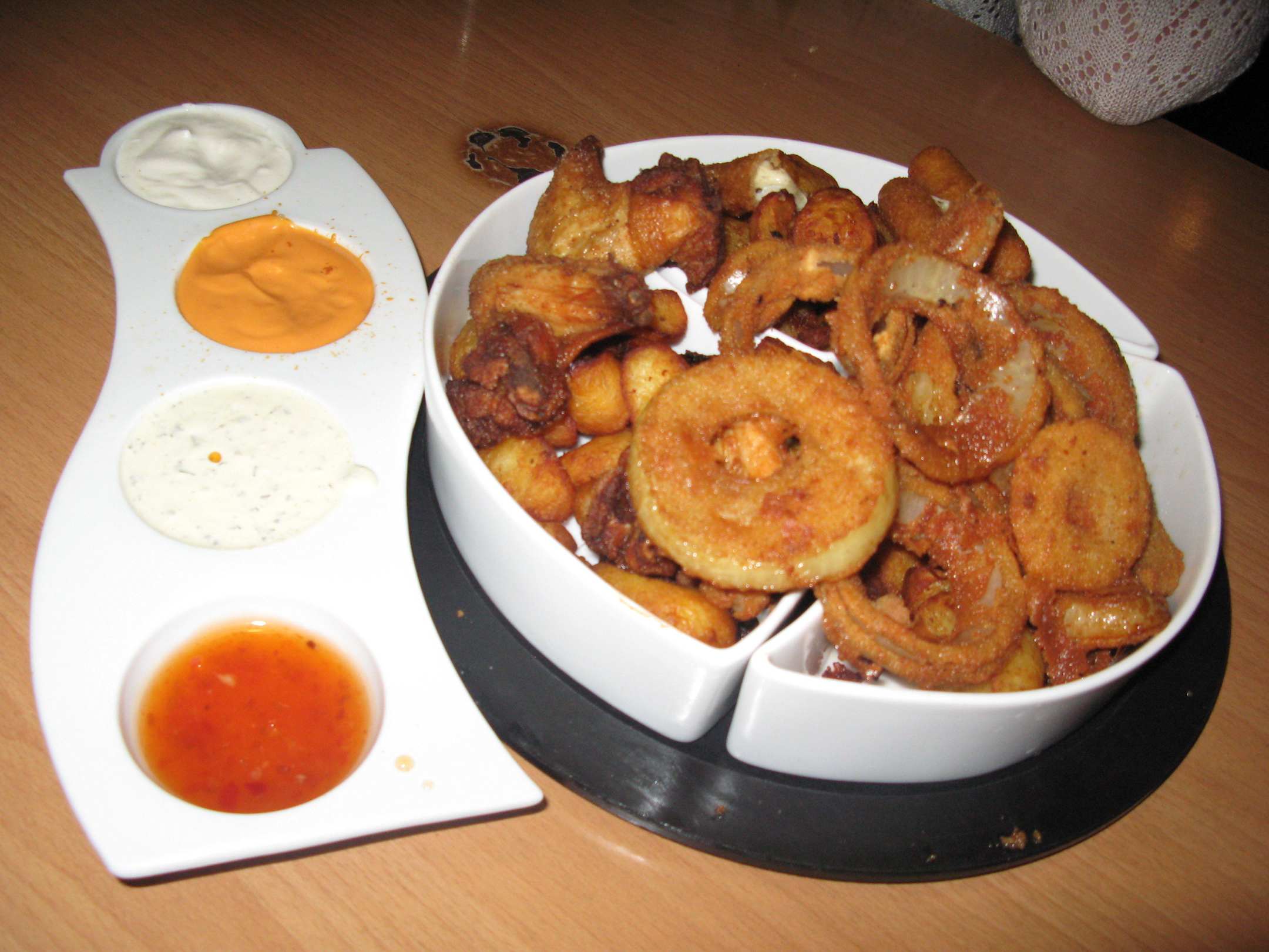 Картофель+куриные крылышки+луковые кольца