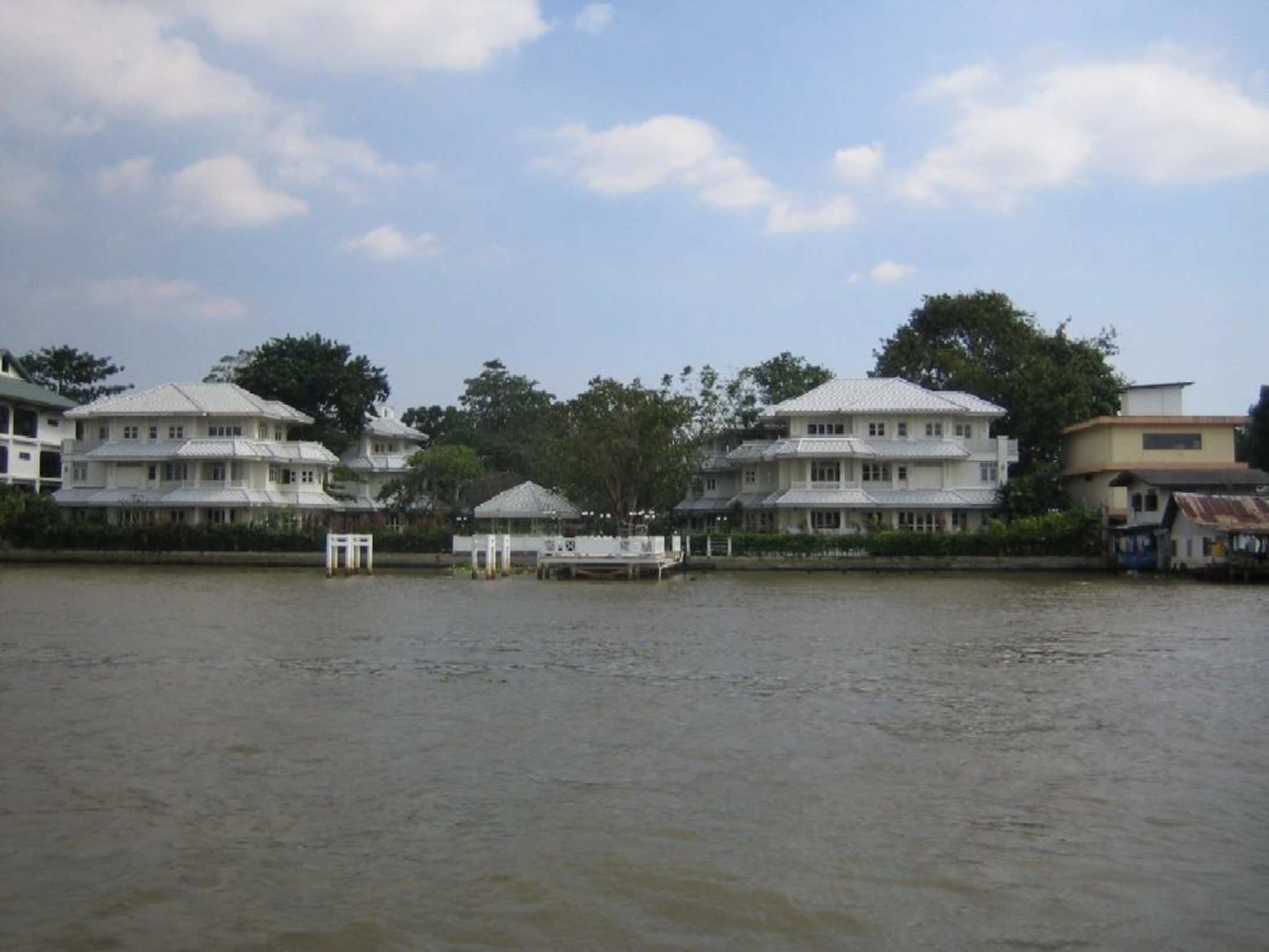 Alte Häuser am Chao Phraya River.