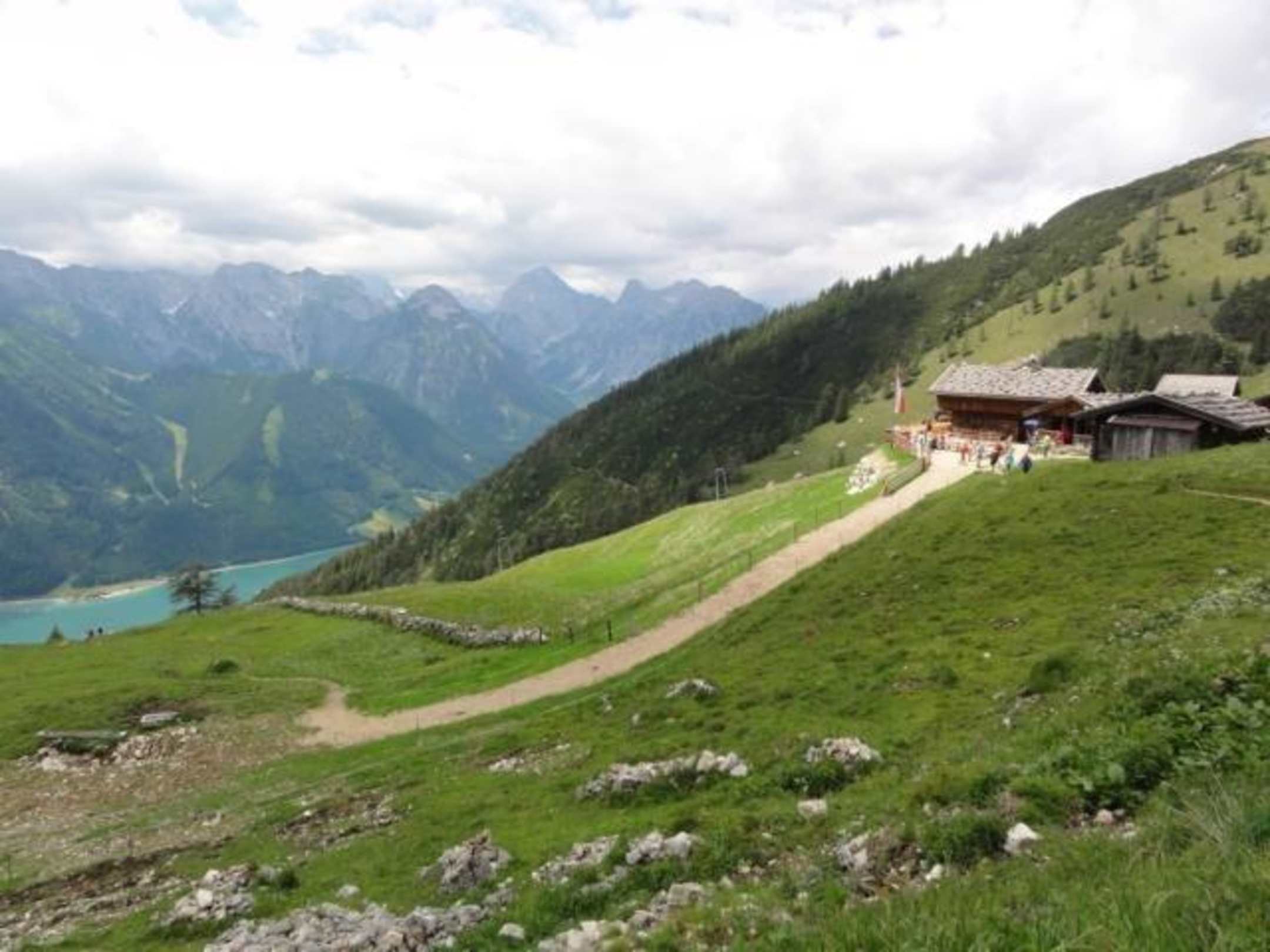 Blick auf Alm und See