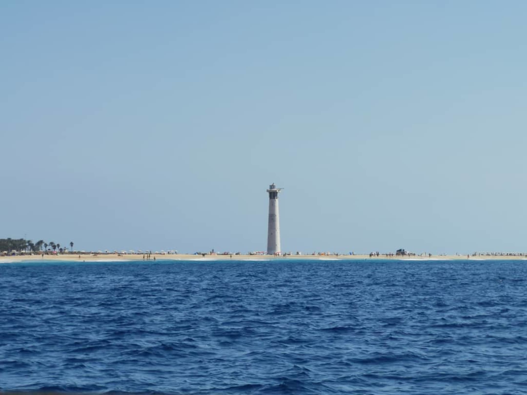 Ausblick zum Leuchtturm vom Boot in Morro Jable