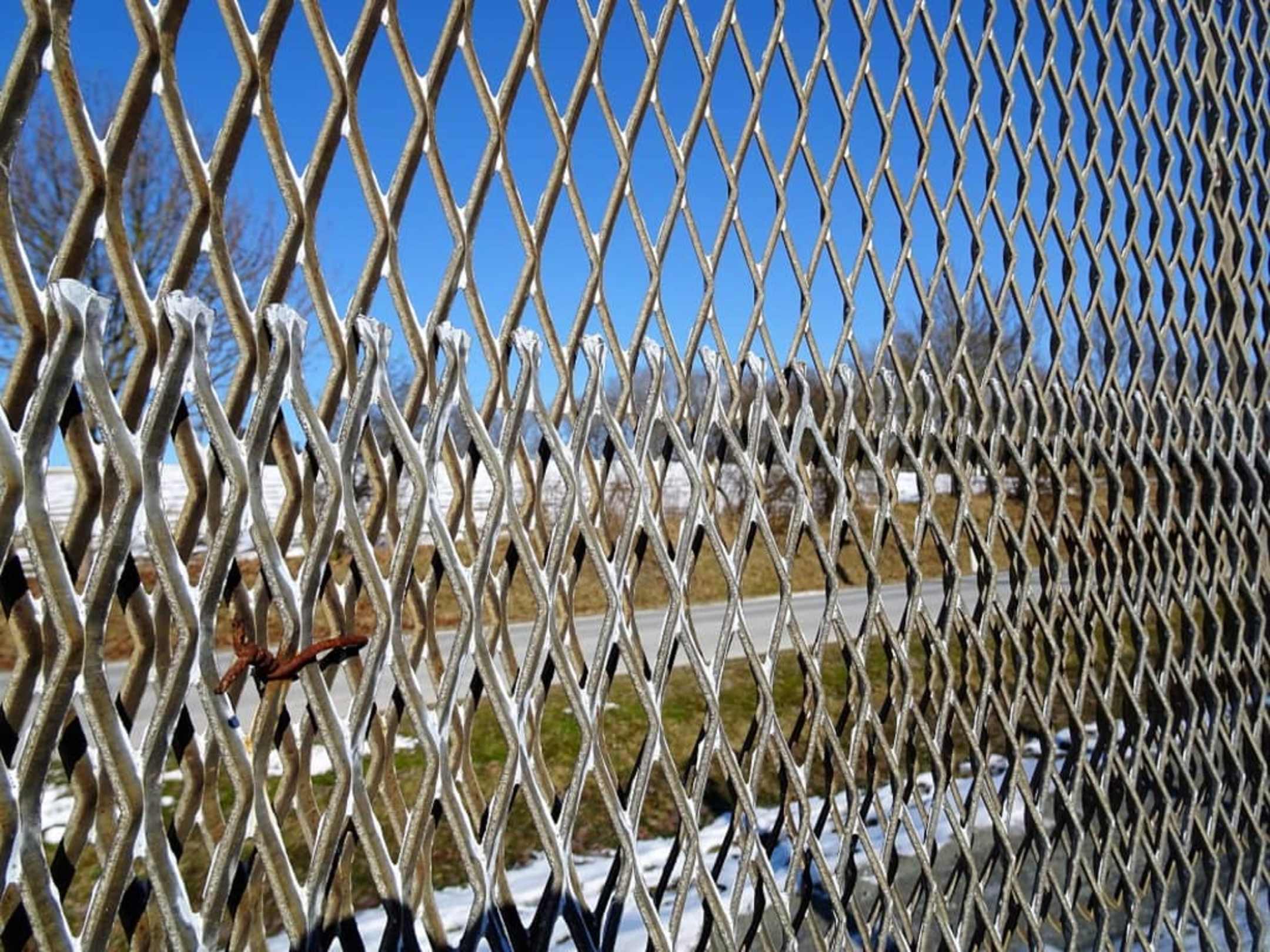 Der Metallmaschenzaun der Grenze
