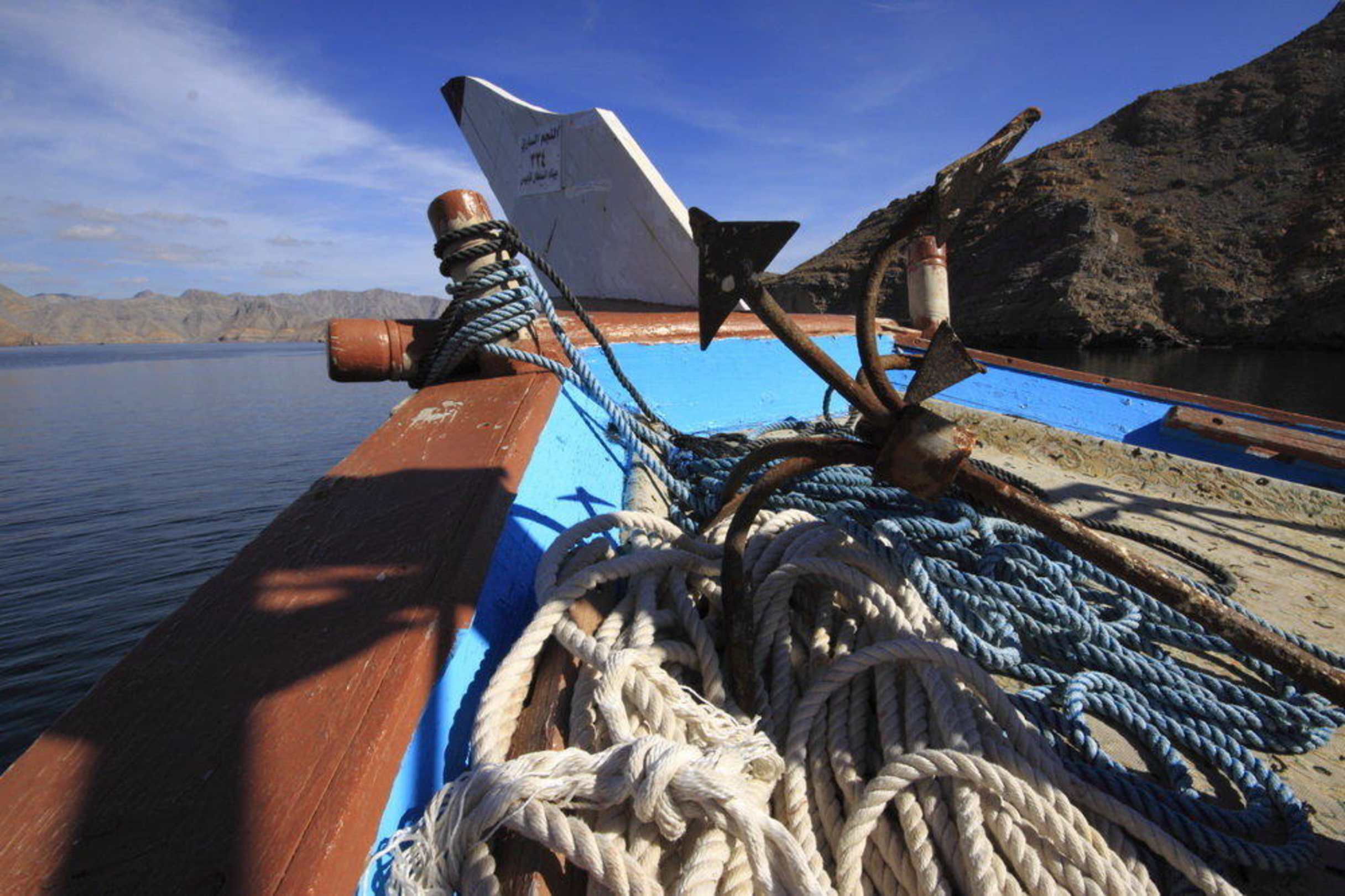 Dhau-Boot im Omani Fjord