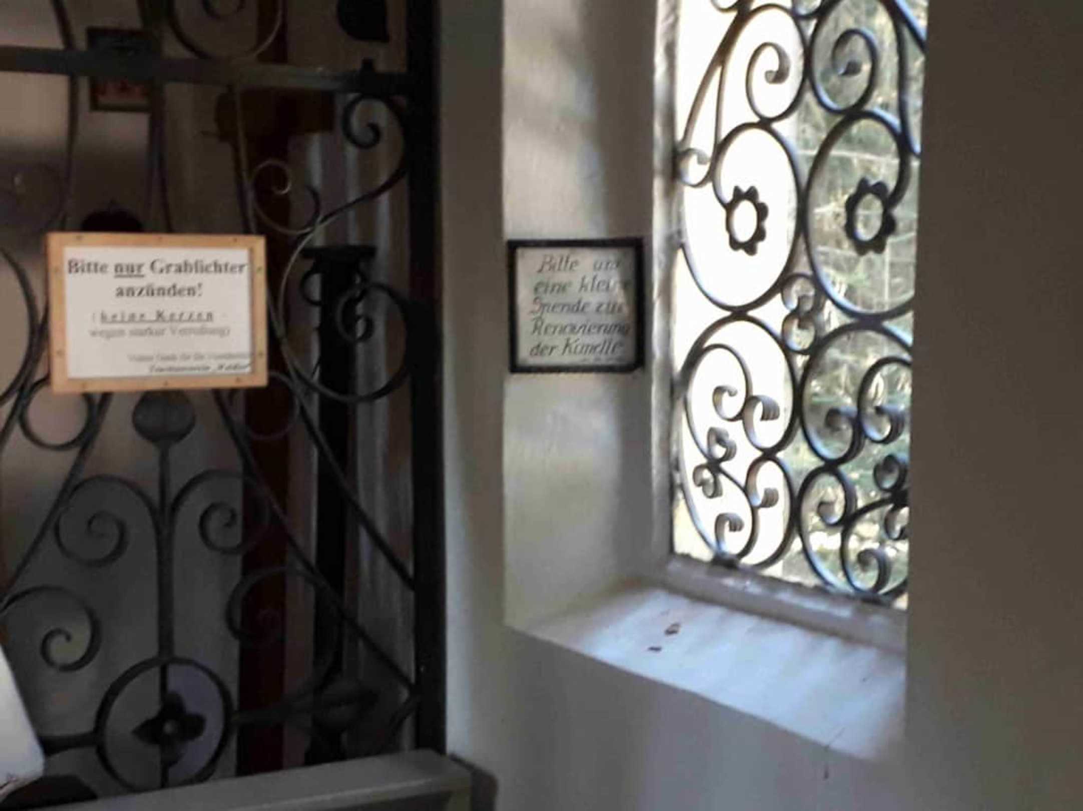 Kapelle innen mit Einwurf für Spenden