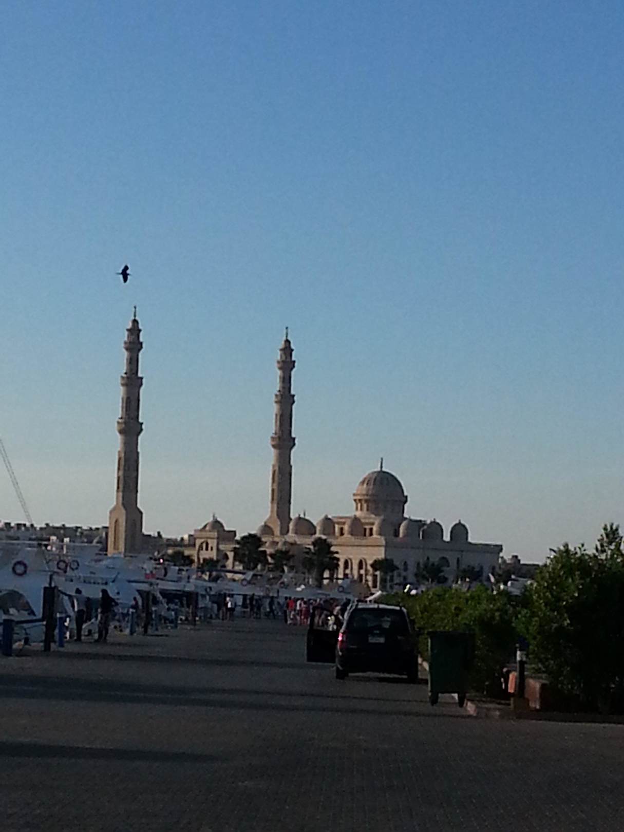 Blick vom Hafen auf die Moschee