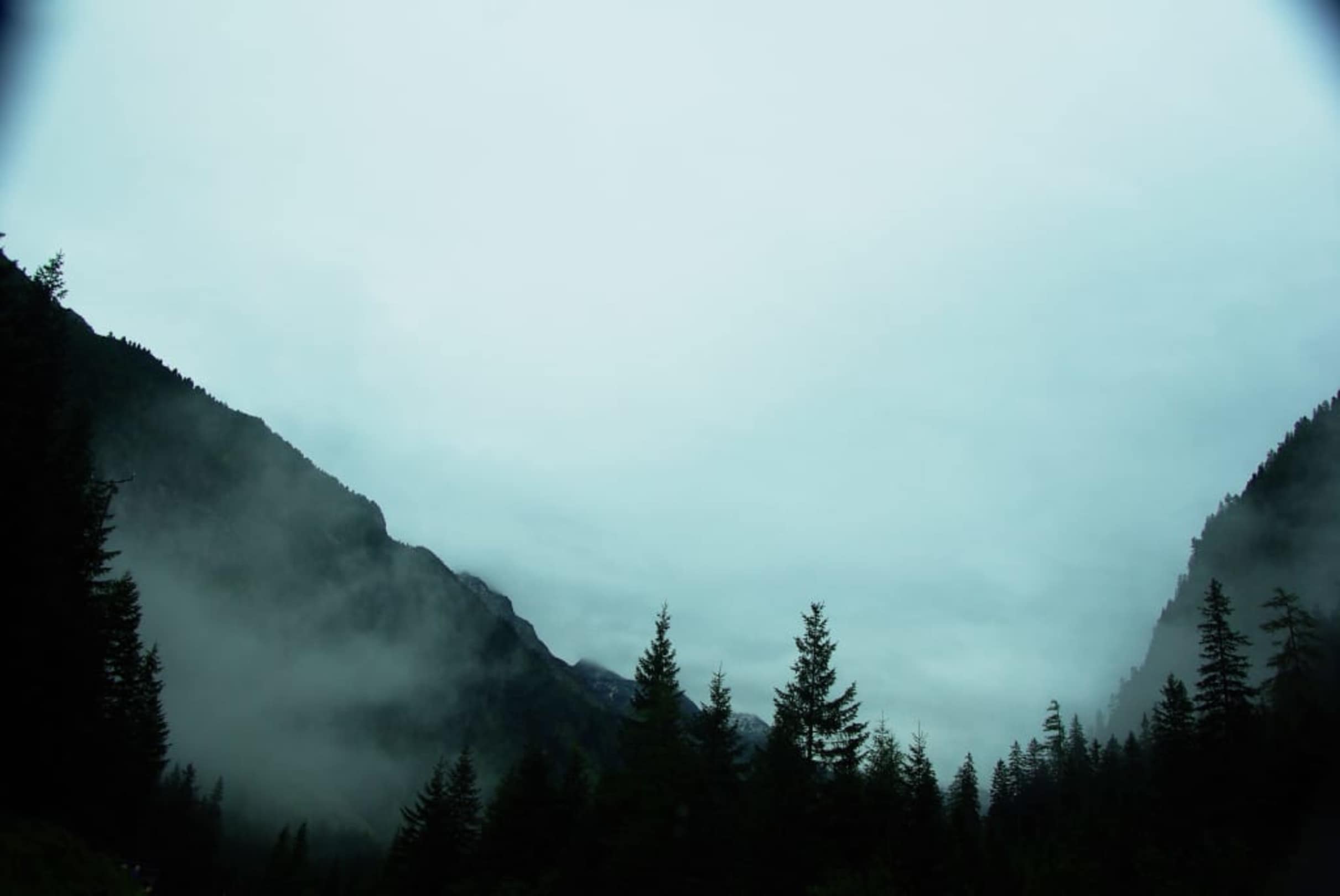 Berge noch im Nebel gehüllt