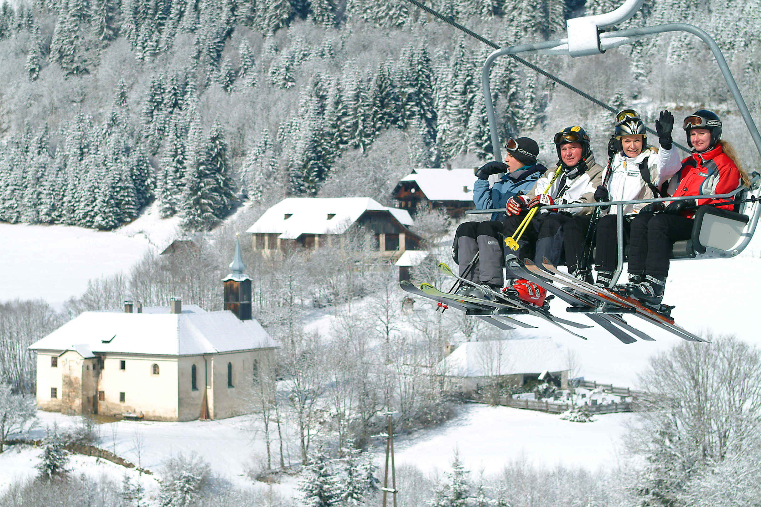 Blick von der Skipiste zum Hof