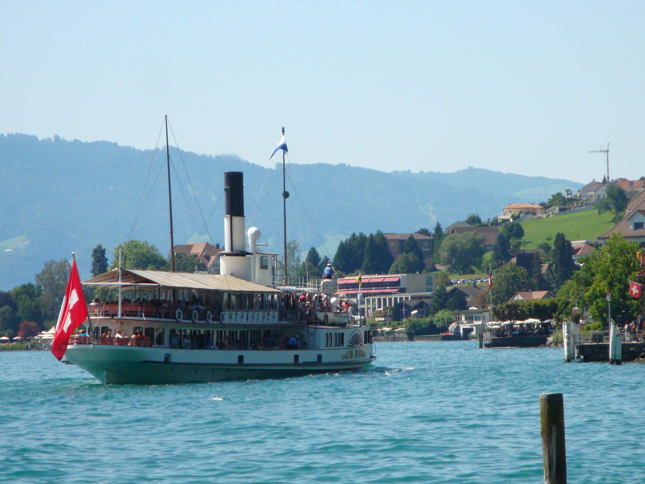 Raddampfer Uri Richtung Anlegestelle Weggis
