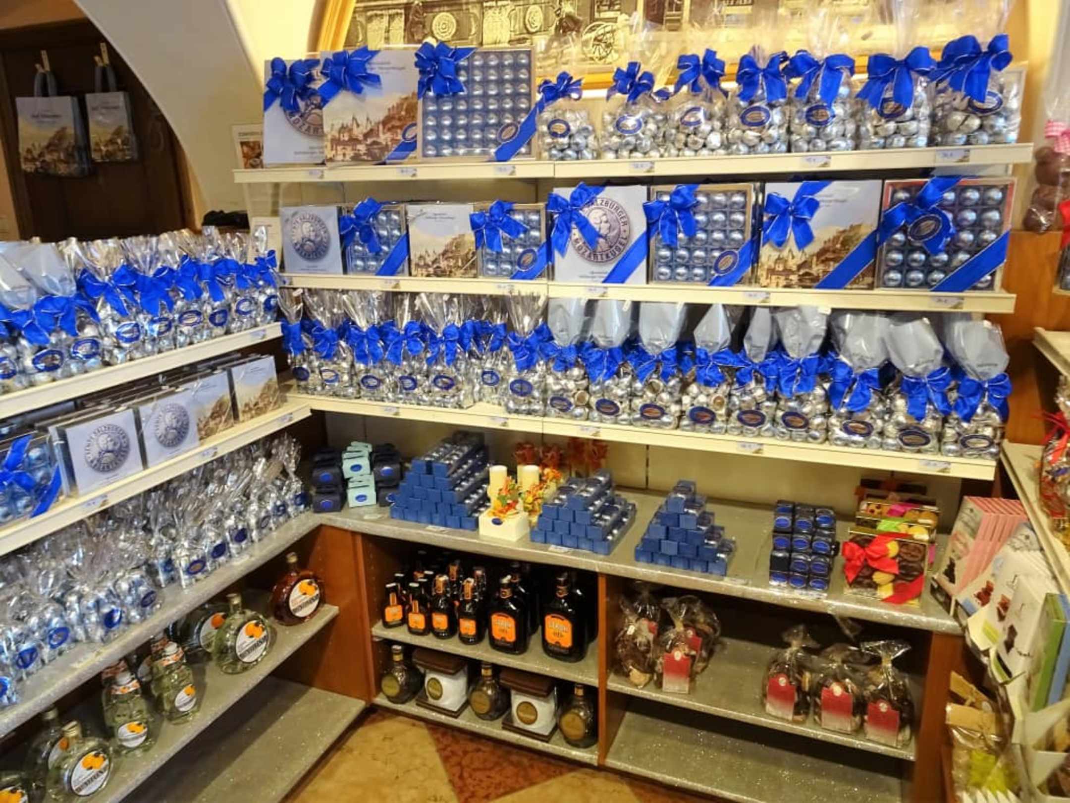 Blick auf die Auslagen der Confiserie Holzermayr