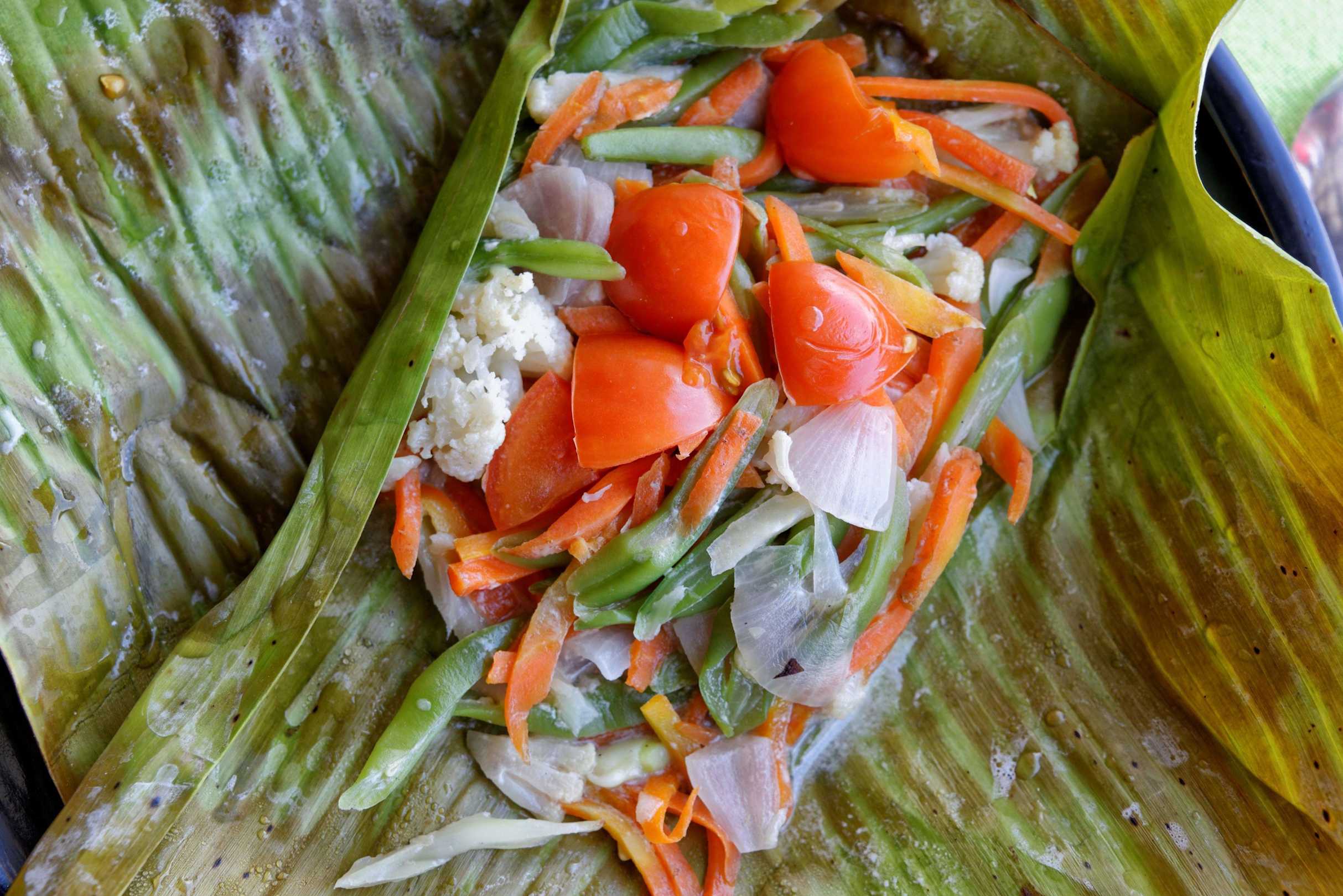 Gemüse im Bananenblatt