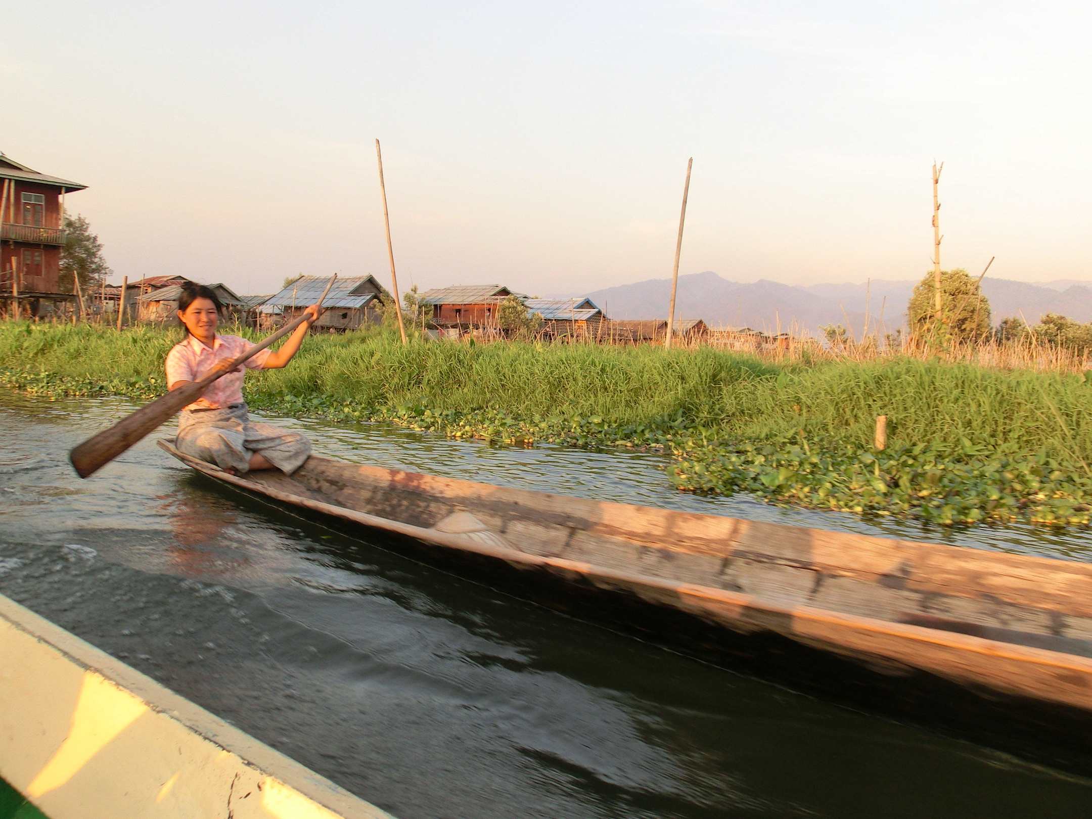 Eine Frau fährt zu ihren schwimmenden Gärten