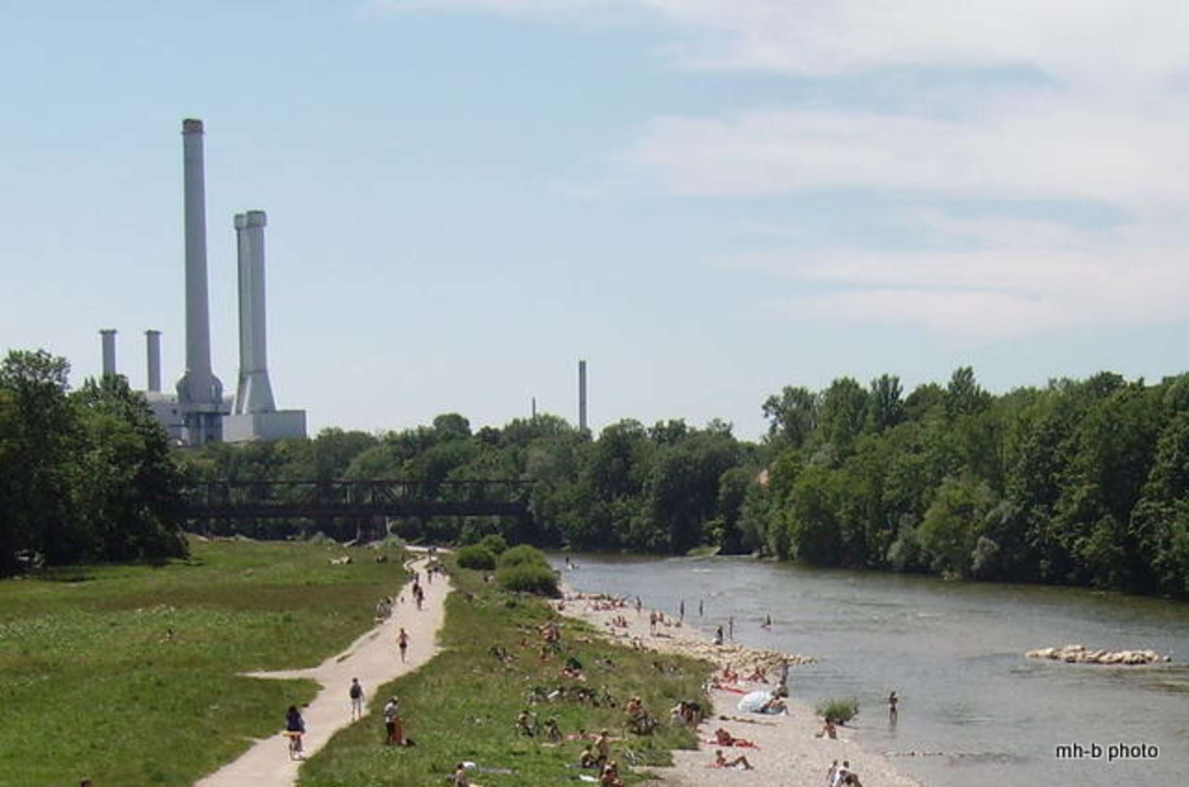 Blick über die Isar nach Sendling und Kraftwerk