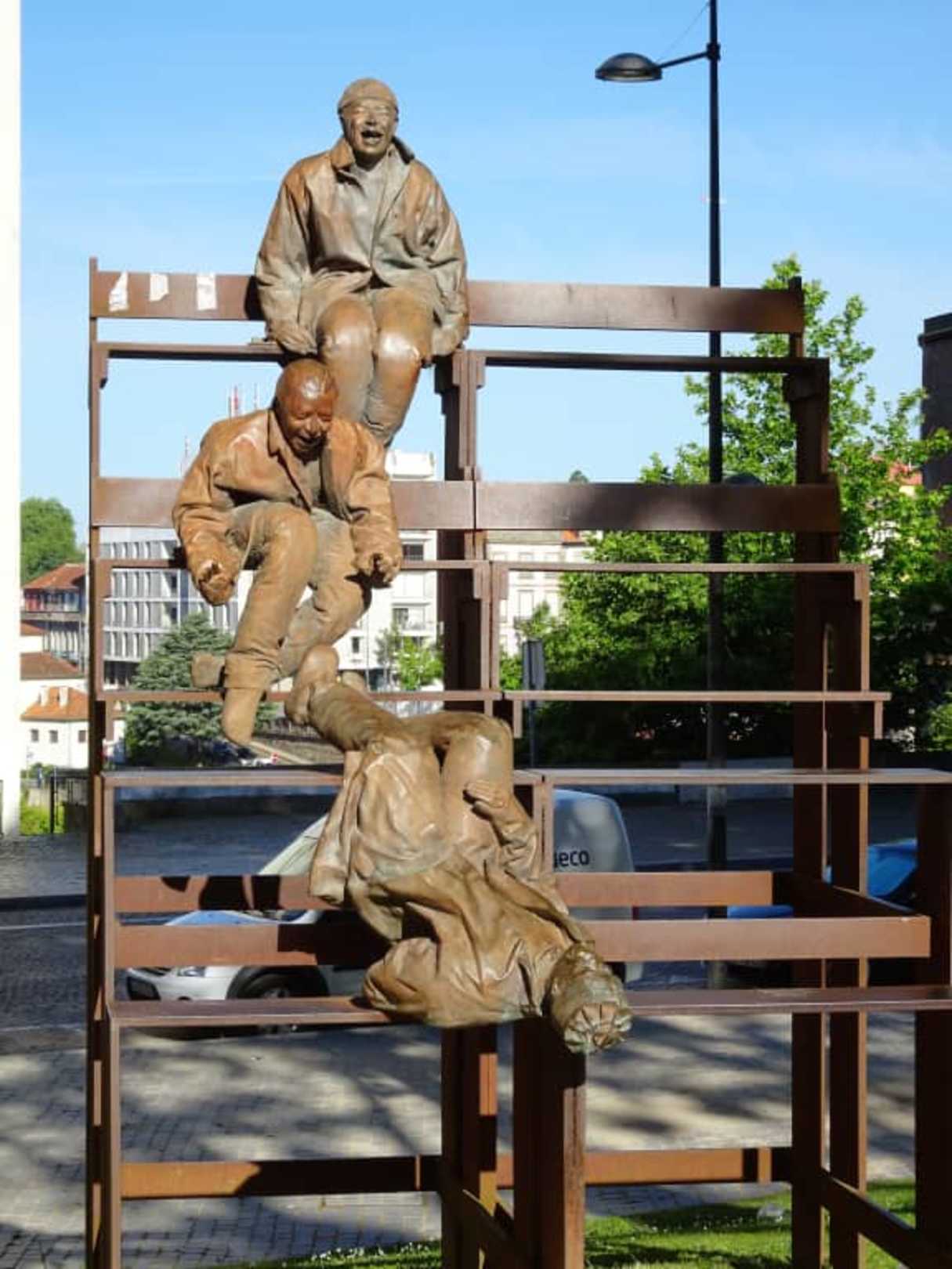Plastik von Juan Muñoz im Jardim de João Chagas