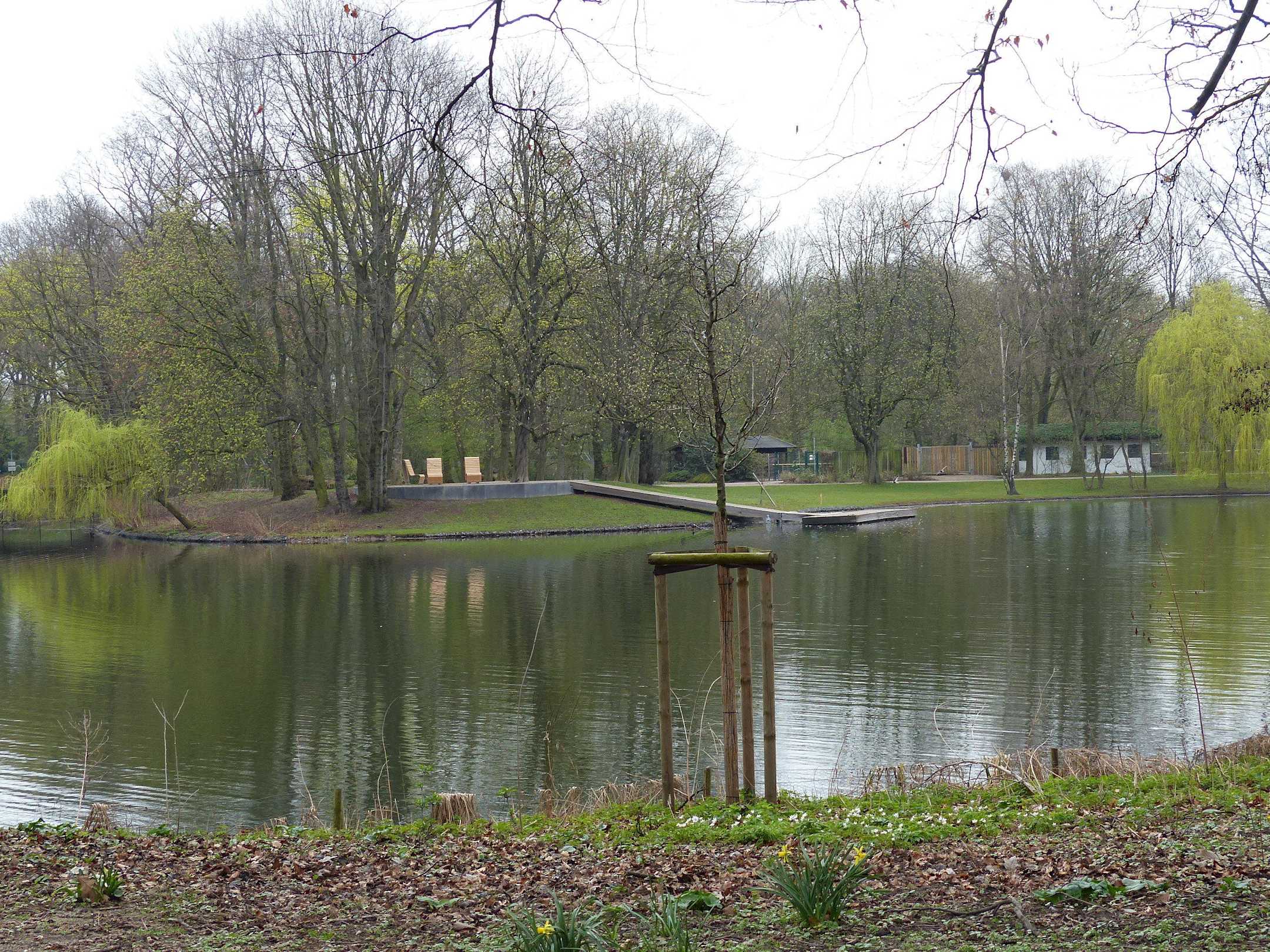 Blick auf den See mit Ruhebänken